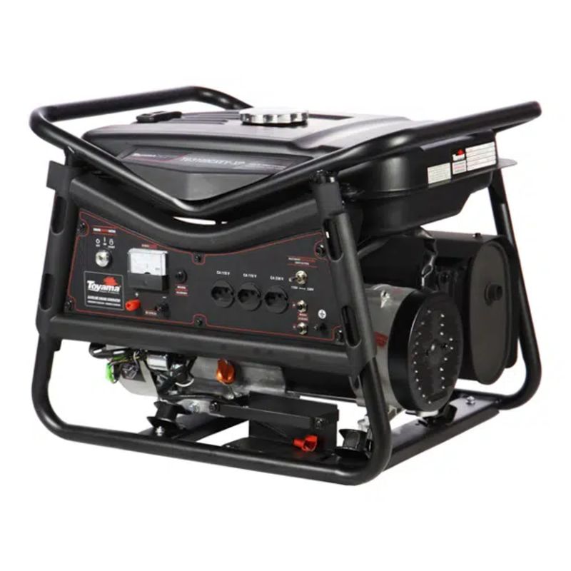 Código do Fornecedor: 201-048 Marca: Toyama Conteúdo da embalagem: 1 Gerador à Gasolina 3,0 KVA Bi-Volt Partida Elétrica TG3100CXEV-XP Toyama Especificações Técnicas:Tipo: Gerador Gasolina Refrigerado a ArCilindradas Motor: 212 ccSistema de Partida: Manual e ElétricaPotência Máxima: 3.1 kVAPotência Nominal (Contínua): 2.8 kVATensão de Saída: 115 V ou 230 VFases: MonofásicoTanque de Combustível: 15,0 lCapacidade de Óleo: 0,6 lRotação Máxima: 3600 RPMFrequência: 60 HzSaída Auxiliar: 12VDC 8A Características e Benefícios:Motor Potente: Equipado com motor a gasolina 4 tempos de ignição por centelha, com 212 cc, monocilíndrico e refrigerado a ar, com opções de partida manual e elétrica, garantindo fácil operação e alta performance.Alternador Síncrono Bivolt: Alternador monofásico com chave seletora de tensão 115/230 V, 2 polos, com 3.1 kVA de potência máxima e regulador eletrônico automático de tensão (AVR) para maior estabilidade de corrente.Carregador de Bateria: Conta com carregador de bateria auxiliar 12 VDC / 8 A e voltímetro analógico para monitoramento eficiente.Autonomia Prolongada: Tanque de combustível com capacidade de 15 litros, proporcionando até 9 horas de funcionamento contínuo, ideal para longas jornadas de trabalho.Robustez e Mobilidade: Quadro de proteção reforçado para maior durabilidade e rodas que facilitam o transporte.Característica Adicional: Regulador Eletrônico de Tensão (AVR)O Gerador de Energia a Gasolina TG3100CXEV-XP da Toyama combina potência e eficiência, sendo a escolha ideal para aplicações profissionais que exigem um fornecimento contínuo e confiável de energia elétrica. Garantia: 3 mesesImagens meramente ilustrativas de responsabilidade do fornecedor