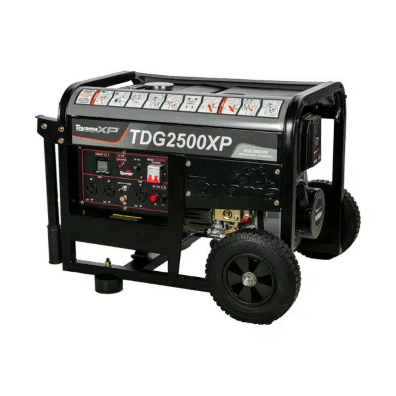 Código do Fornecedor: 251-065 Marca: Toyama Conteúdo da embalagem: 1 Gerador Diesel 2,2 KVA Monofásico Bivolt 115/230V Partida Manual TDG2500XP Toyama Especificações Técnicas:Tipo: Gerador Diesel Refrigerado a ArCilindradas Motor: 211 ccSistema de Partida: Partida ManualPotência Máxima: 2.2 KVAPotência Nominal (Contínua): 2 KVATensão de Saída: 230V ou 115VFases: MonofásicoControle de Tensão: AVRTanque de Combustível: 11.6 lRotação Máxima: 3600 RPMCapacidade do Óleo: 0.8 lFrequência: 60 HzCarregador de Bateria 12VDC 8A: SimCaracterística Adicional: Medidor Digital 3 em 1 O Gerador de Energia a Diesel TDG2500XP da Toyama foi desenvolvido para atender demandas profissionais, garantindo eficiência e confiabilidade em diversas aplicações. Equipado com um motor de pistão de ignição por compressão a diesel, este gerador é ideal para fornecer energia em locais onde a rede elétrica convencional não está disponível. Características e Benefícios:Motor Potente: Equipado com um motor diesel de 211 cc, monocilíndrico, refrigerado a ar, proporcionando potência e durabilidade.Alternador Síncrono Bivolt: Possui alternador síncrono monofásico com chave seletora de tensão 115/230 V, 2 polos, e potência máxima de 2.2 kVA.Regulador de Tensão AVR: Dotado de regulador eletrônico automático de tensão (AVR) que garante a estabilidade da tensão fornecida.Sensor de Nível de Óleo: Sistema de proteção que impede o funcionamento do motor caso o nível de óleo esteja abaixo do recomendado.Medidor Digital: Display digital 3 em 1 que mostra os parâmetros de tensão (V), frequência (Hz) e tempo de funcionamento (H), facilitando o monitoramento. Garantia: 3 mesesImagens meramente ilustrativas de responsabilidade do fornecedor