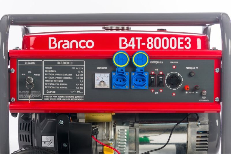 Motor: 15,0 cvPotência máxima: 8,0 kvaPotência contínua: 7,5 kvaTensão de saída Principal: 220 VControle de tensão: AVRCarregador de bateria: 13 V; 8,3 ACapacidade do tanque: 22LFases: TrifásicoRuído (7 m): 73 dBADimensões do produto (CxLxA) (mm): 691 x 750 x 640Peso: 83 kg