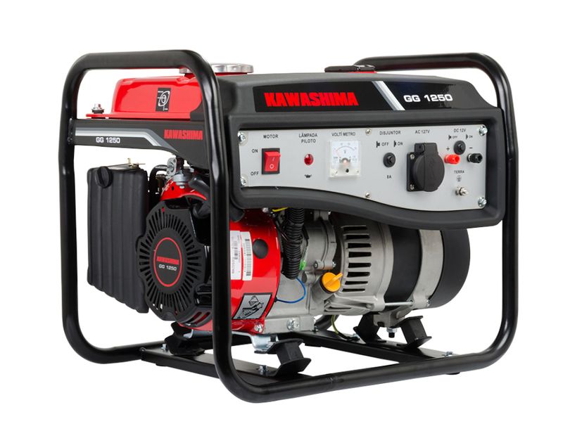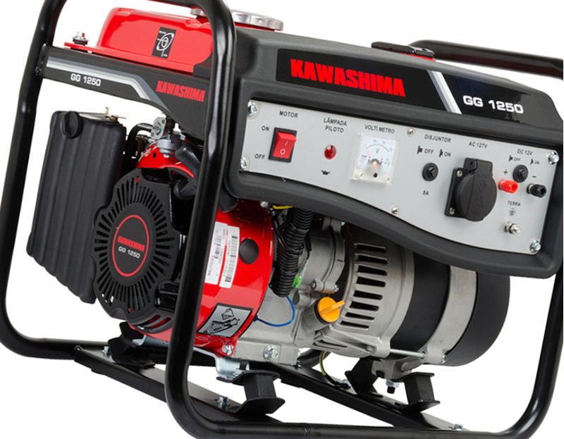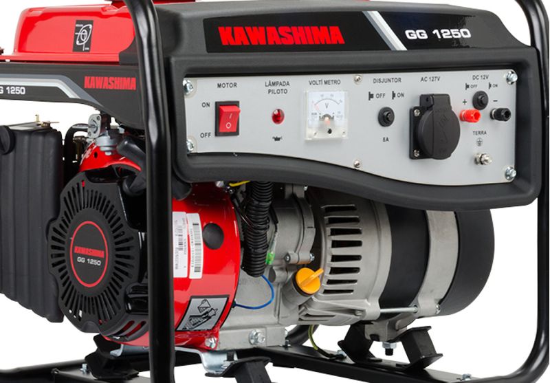GERADOR KAWASHIMA GG 1250 MONO 127V TIPO: Gerador a gasolina, monofásico POTÊNCIA MÁXIMA: 1250 W POTÊNCIA NOMINAL: 1000 W TENSÃO: 127V FREQUÊNCIA: 60 Hz CARREGADOR DE BATERIA: Sim REGULADOR DE TENSÃO (AVR): Sim VOLTÍMETRO: Sim CONSUMO DE COMBUSTÍVEL: 450 g/kwh MOTOR: Kawashima TIPO DO MOTOR: Monocilíndrico, horizontal, OHV, gasolina, 4T, refrigerado a ar SISTEMA DE PARTIDA: Manual CAPACIDADE DO TANQUE DE COMBUSTÍVEL: 6 L NÍVEL DE RUÍDO: 65 db (A) DIMENSÕES: 510x390x435 mm PESO LÍQUIDO: 26 kg