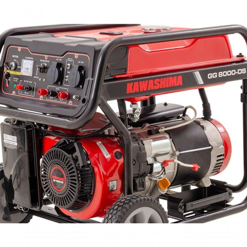 Gerador Gasolina Gg8000-ds 8,0kw Mono Bivolt Part. ElétricaGERADOR KAWASHIMA GG 8000-DS MONO BIVOLTTIPO: Gerador a gasolina, monofásicoPOTÊNCIA MÁXIMA: 8000 WPOTÊNCIA NOMINAL: 7000 WTENSÃO: Bivolt 115/230VFREQUÊNCIA: 60 HzCARREGADOR DE BATERIA: SimREGULADOR DE TENSÃO (AVR): SimVOLTÍMETRO: SimCONSUMO DE COMBUSTÍVEL: 374 g/kwhMOTOR: KawashimaTIPO DO MOTOR: Monocilíndrico, horizontal, gasolina, 4T, refrigerado a arPOTÊNCIA MÁXIMA DO MOTOR: 13 HPSISTEMA DE PARTIDA: Manual e elétrico (12V - 17A)CAPACIDADE DO TANQUE DE COMBUSTÍVEL: 25 LNÍVEL DE RUÍDO: 98 db (A)DIMENSÕES: 700x526x580 mmPESO LÍQUIDO: 88 kgOBSERVAÇÕES: Não acompanha bateria NA