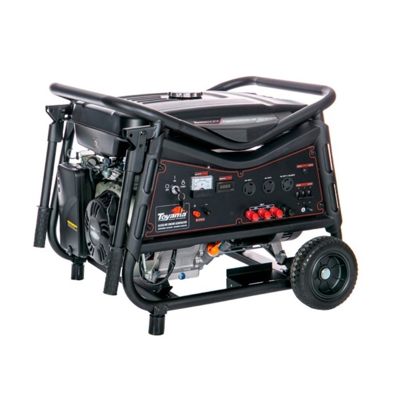 Código: 201-053 Marca: Toyama O Grupo Gerador Toyama TG8000CXEV3D-XP foi desenvolvido para o uso profissional. É equipado com motor gasolina 4 tempos de 420cc, monocilíndrico, refrigerado a ar, com partida manual e elétrica. Possui alternador síncrono, trifásico 220 V, 2 polos, com 8.9 kVA de potência máxima, excitatriz rotativa por escovas, dotado de regulador eletrônico automático de tensão (AVR). Conta com carregador de bateria auxiliar 12 VDC / 8 A e voltímetro analógico. Seu tanque com capacidade para 24 litros de combustível, proporciona uma autonomia de até 6 horas de funcionamento. Para facilitar sua mobilidade, dispõe de quadro resistente, rodas e alças de transporte. Atende as demandas profissionais, sendo indicado para diversas aplicações como: camping, residências, chácaras, fazendas, estabelecimentos comerciais ou em quaisquer situações que exijam a necessidade do fornecimento de energia elétrica. É ideal para ligar lâmpadas, geladeiras, freezers, ventiladores, televisores, ar condicionado, ferramentas elétricas e entre outros. Especificações Técnicas Refrigeração: Refrigerado a Ar Cilindros: Monocilíndrico Tipo do Motor: 4 Tempos Sistema de Partida: Elétrica + Manual Retrátil Cilindrada: 420 cc Rotação Máxima: 3600 RPM Filtro de Ar: Duplo Elemento Capacidade do Tanque: 24.0 l Capacidade do Óleo: 1.1 l Potência Máxima: 7.1 kW | 8.9 kVA Potência Nominal: 6.5 kW | 8.1 kVA Numero de Fases: Trifásico Tensão Principal: 220 V Frequência: 60 Hz Chave Seletora: Não Carregador de Bateria 12VDC 8A Característica: Com AVR