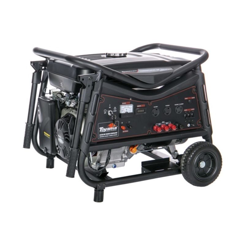 Código: 201-052 Marca: Toyama O Grupo Gerador Toyama TG8000CXEV3-XP foi desenvolvido para o uso profissional. É equipado com motor gasolina 4 tempos de 420cc, monocilíndrico, refrigerado a ar, com partida manual e elétrica. Possui alternador síncrono, trifásico 380V, 2 polos, com 8.9 kVA de potência máxima, excitatriz rotativa por escovas, dotado de regulador eletrônico automático de tensão (AVR). Conta com carregador de bateria auxiliar 12 VDC / 8 A e voltímetro analógico. Seu tanque com capacidade para 24 litros de combustível, proporciona uma autonomia de até 6 horas de funcionamento. Para facilitar sua mobilidade, dispõe de quadro resistente, rodas e alças de transporte. Atende as demandas profissionais, sendo indicado para diversas aplicações como: camping, residências, chácaras, fazendas, estabelecimentos comerciais ou em quaisquer situações que exijam a necessidade do fornecimento de energia elétrica. É ideal para ligar lâmpadas, geladeiras, freezers, ventiladores, televisores, ar condicionado, ferramentas elétricas e entre outros. Especificações Técnicas Refrigeração: Refrigerado a Ar Cilindros: Monocilíndrico Tipo do Motor: 4 Tempos Sistema de Partida: Elétrica + Manual Retrátil Cilindrada: 420 cc Rotação Máxima: 3600 RPM Filtro de Ar: Duplo Elemento Capacidade do Tanque: 24.0 l Capacidade do Óleo: 1.1 l Potência Máxima: 7.1 kW | 8.9 kVA Potência Nominal: 6.5 kW | 8.1 kVA Numero de Fases: Trifásico Tensão Principal: 380 V Frequência: 60 Hz Chave Seletora: Não Carregador de Bateria 12VDC 8A Característica: Com AVR
