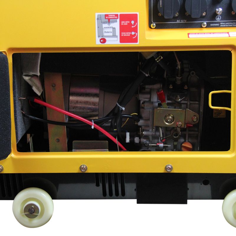Código do Fornecedor: 40144438 Marca: Csm Conteúdo da embalagem: 1 Gerador à Diesel 4,5 KVA 6 HP Mono Gmd 5000Es Csm*Bateria não inclusa nos modelos com partida elétrica. Potência do motor 6 HP Potência máxima 4,5 kVA Potência nominal 4,0 kVA Voltagem 127 / 220V Tensão Monofásico Sistema de partida Elétrica Capacidade do tanque 16 L Autonomia aproximada 12 h Ruído a 7 metros ≤ 57 dB Peso 112 kg Dimensões (CxLxA) (mm) 835x540x740Potência do motor Lifan 6 HPPotência máxima 4,5 kVAVoltagem 127/220vTensão MonofásicoSitema de partida elétricaSitema super silent O Gerador Portátil a Diesel é a solução ideal para garantir energia elétrica em locais onde a rede elétrica pode ser interrompida. Com capacidade para acionar uma variedade de equipamentos, desde ferramentas elétricas até motores e lâmpadas, este gerador oferece confiabilidade e praticidade. Recomendado para residências, pontos comerciais, fazendas e constutoras. Possui estrutura e fechamento da cabine em aço além de proteção anticorrosiva antes da pintura e Sistema Super Silent que emite somente 70dB a 7 metros de distância. Equipado com motor a diesel, este gerador oferece alta eficiência energética e baixo consumo de combustível, garantindo um fornecimento de energia econômico e sustentável. Características Principais: Potência de 4,5 KVA: Com capacidade de 4,5 KVA, o Gmd 5000Es é capaz de alimentar uma ampla gama de equipamentos e dispositivos, garantindo energia estável e confiável em situações onde a rede elétrica não está disponível ou é instável. Motor Diesel de 6 HP: O gerador é equipado com um motor a diesel de 6 HP, conhecido por sua eficiência e durabilidade, proporcionando longos períodos de operação com baixo consumo de combustível. Monofásico 220V: Este gerador oferece uma tensão de saída de 220V, ideal para alimentar eletrodomésticos, ferramentas elétricas e outros aparelhos que requerem energia confiável. Partida Elétrica: A partida elétrica torna o uso do gerador muito mais prático, permitindo que ele seja ligado rapidamente com o simples pressionar de um botão, sem esforço físico. Portabilidade e Design Compacto: O Gmd 5000Es é projetado para ser portátil, com rodas robustas e uma alça ergonômica que facilitam seu transporte e manuseio em diversos locais de trabalho ou eventos. Construção Robusta: Com um design robusto e materiais de alta qualidade, este gerador é durável e preparado para suportar as condições mais exigentes, seja em ambientes industriais ou residenciais. Sistema de Proteção: Equipado com proteção contra sobrecarga, baixa pressão de óleo e superaquecimento, garantindo uma operação segura e aumentando a vida útil do equipamento.