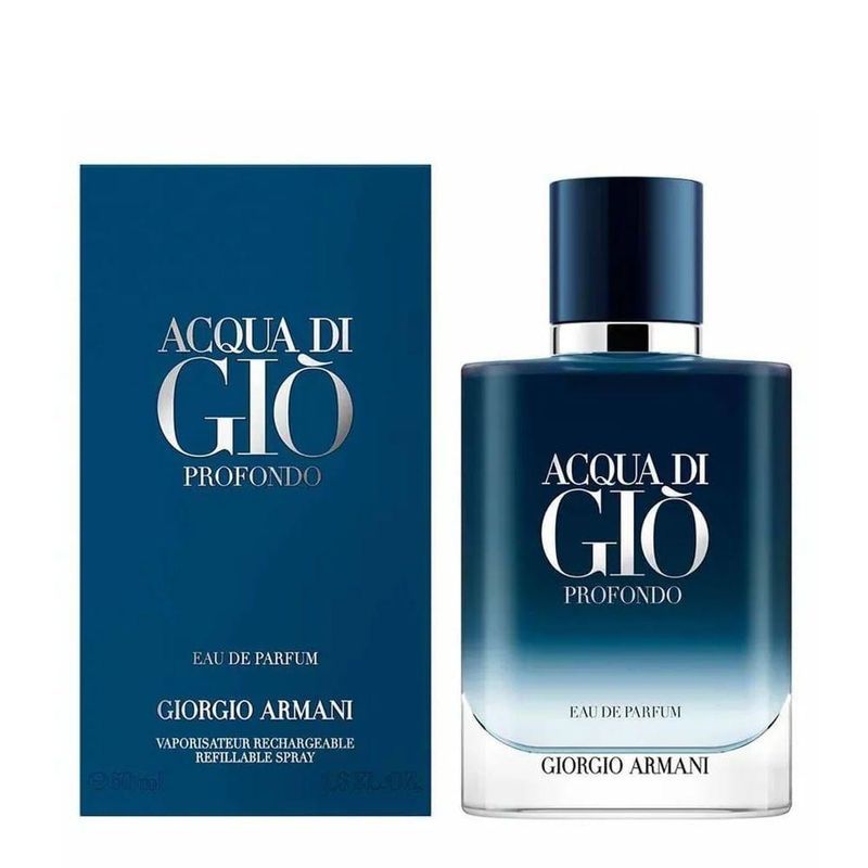 Giorgio Armani Acqua Di Giò Profondo Eau De Parfum - Perfume Masculino 50mlGiorgio Armani Acqua Di Giò Profondo Eau de Parfum - Perfume Masculino 50mlO Giorgio Armani Acqua Di Giò Profondo Eau de Parfum 50ml é uma fragrância masculina que captura a essência de um mergulho nas profundezas do mar, ideal para o homem moderno que valoriza liberdade e conexão com a natureza. Lançado em 2020 e criado pelo mestre perfumista Alberto Morillas, este perfume aromático fougère combina frescor marinho com intensidade amadeirada. Ele reflete a masculinidade contemporânea, equilibrando sensorialidade e sofisticação, e é perfeito para ocasiões casuais ou formais, evocando a sensação de um oceano infinito.Características:Marca: Giorgio ArmaniLinha: Acqua Di GiòCategoria: PerfumeVersão: Profondo Eau de ParfumBenefícios: Frescor intenso, fixação prolongada, projeção equilibrada, aroma sofisticadoIngredientes Principais: Notas marinhas, tangerina verde, patchouli, almíscarModo de Aplicação: Borrife a 15-20 cm da pele nos pontos de pulsação, como pulsos e pescoço, para melhor projeção. Evite esfregar após a aplicação.Especificações do Produto:Família Olfativa: Aromático FougèreGênero: MasculinoConcentração: Eau de ParfumOcasião: Dia a dia, eventos casuais, climas quentesNome do Produto: Giorgio Armani Acqua Di Giò Profondo Eau de ParfumLinha: Acqua Di GiòVersão: ProfondoNotas de Topo: Notas marinhas, tangerina verde, bergamotaNotas de Coração: Alecrim, lavanda, cipreste, lentiscoNotas de Fundo: Patchouli, almíscar, âmbar mineralBenefícios do Produto:Eficácia: Oferece um frescor marinho com profundidade amadeirada, ideal para quem busca um perfume versátil e elegante.Durabilidade: Fixação de 6 a 8 horas na pele, com projeção moderada por cerca de 2 horas, adequada para uso diário.Versatilidade: Perfeito para climas quentes e ocasiões , do trabalho a eventos casuais, com um toque sofisticado.Design ou Praticidade: O frasco de 50ml é de vidro fosco em um elegante azul-marinho quase opaco, ecoando as profundezas do mar, com tampa metálica.O Giorgio Armani Acqua Di Giò Profondo Eau de Parfum 50ml é a escolha ideal para o homem que busca uma fragrância que una frescor oceânico e sofisticação. Com suas notas marinhas e amadeiradas, ele é perfeito para destacar a autenticidade e a masculinidade moderna em qualquer ocasião.Família Olfativa - AromáticoConcentração - Eau de ParfumGênero - MasculinoNome do Produto - Giorgio Armani Acqua Di Giò ProfondoLinha - Acqua Di GiòVersão - ProfondoConcentração - Eau de ParfumNotas de topo - Notas marinhas, tangerina verde, bergamotaOcasião - Dia a Dia Encontros Casuais Clima QuenteNotas de coração - Alecrim, lavanda, cipreste, lentiscoNotas de fundo - Patchouli, almíscar, âmbar mineral