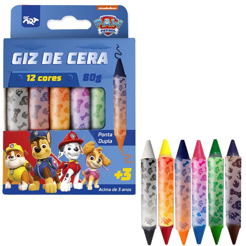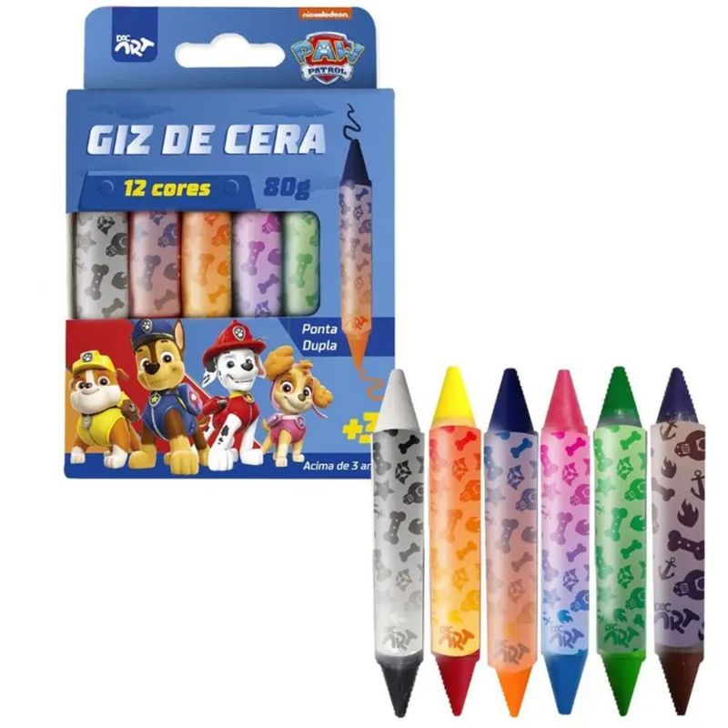 GIZ DE CERA PONTA DUPLA PATRULHA CANINA 12 CORES 4746 - DAC O Giz de Cera Dupla Ponta Patrulha Canina é ideal para os pequenos artistas que adoram colorir! Com 12 cores vibrantes e uma ponta dupla, cada giz oferece duas opções de cor, permitindo mais criatividade e diversão. Características: 12 cores vibrantes para muitos desenhos criativos. Ponta dupla: cada giz tem duas cores, fácil de alternar. Não suja as mãos: desenvolvido para manter as mãos limpas. Fácil de limpar: pode ser removido facilmente de superfícies. Textura suave: ideal para as mãos pequenas. Atóxico e seguro. INMETRO: OCP 0061 REGISTRO: 015434/2024 Perfeito para a escola ou para brincar em casa, o Giz de Cera Dupla Ponta Patrulha Canina garante muita diversão e criatividade!