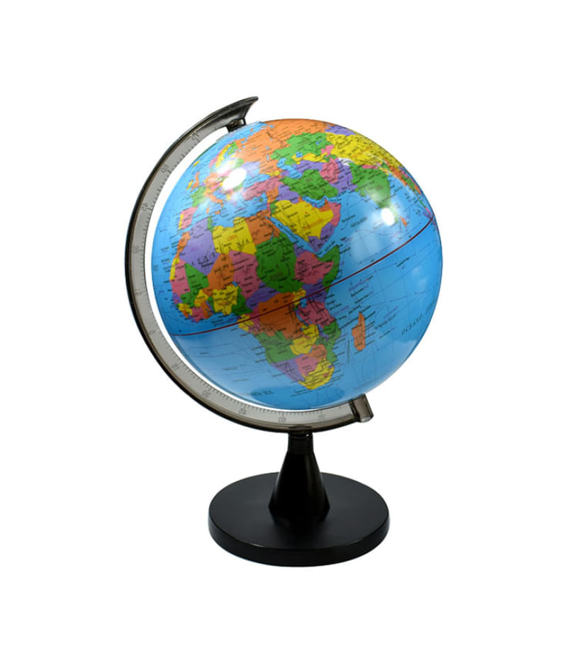 Globo Terrestre 14 cm Western Indicações dos continentes, países, oceanos, capitais e principais cidades do mundo. Características Gerais: - Decorativo - Esfera giratória - Material: PVC, PP - Cor: Globo: Azul / Suporte:Preto - Marca: Western - Origem: China - Diâmetro: 14cm - Globo produzido em plástico de alta resistência e fácil limpeza. Cuidados: - Guarde em local seco e arejado. - Evite quedas bruscas. Garantia do produto: 90 dias de garantia de acordo com o Código de Defesa do Consumidor + a Garantia do Fabricante.