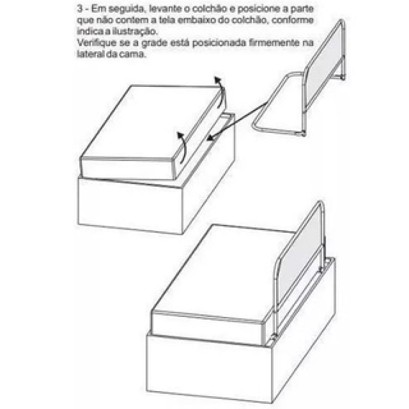 Agora proteger sua criança ficou muito mais fácil, poupando você de preocupação. Desenvolvido para garantir maior segurança, perfeito para impedir que seu filho (a) ou Idoso caiam da cama, além de ser muito mais fácil manusear pois não precisa furar para instalar, basta colocar a base inferior em baixo do colchão e a grade ficará fixa em segurança além disso é leve e prática para transportar. - Estrutura em aço de tubo 5/8 com acabamento em pintura epóxi e cura a 220º - Serve para colchões de 10 cm a 25 cm - Revestida com tela 100% Poliéster - Estrutura Dobrável de fácil Instalação - Fácil de Limpar - Não ocupa Espaço Medidas: - Comprimento: 87cm - Altura Total: 41cm - Altura da parte com a tela: 25cm - Largura(base de ferro que fica em baixo do colchão): 30cm - Cor: Branca