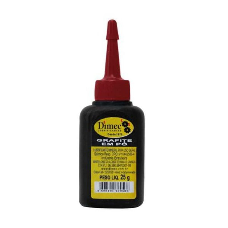 Grafite em Pó 25g Lubrificante Uso Geral para Canaletas de Vidros, Cadeados e Fechaduras - GRAFITE EM Pà 25GRAMAS - DIMECO Grafite em Pó 25g da Dimec é o lubrificante de uso geral que você precisa para manter suas canaletas de vidros, cadeados, fechaduras e muito mais sempre funcionando perfeitamente. Com alta qualidade e eficiência, este produto é essencial para garantir a durabilidade e o bom funcionamento de diversos itens do seu dia a dia.* Lubrificante de uso geral* Ideal para canaletas de vidros, cadeados, fechaduras, etc.* Garante durabilidade e bom funcionamento dos itensInformações Técnicas:- Marca: Dimec- Modelo: Grafite em Pó 25g- Peso: 25g- Uso: GeralNão deixe de adquirir o Grafite em Pó 25g da Dimec e tenha a garantia de qualidade e eficiência que só a Dimec Universo do Lar pode oferecer. -------- Descrição Original enviada pelo Fornecedor: GRAFITE EM Pà 25GRAMAS - DIMECLubrificante de uso geralPara canaletas de vidros, cadeados, fechaduras, etc. Características Gerais do Produto: Garantia: • 3 meses