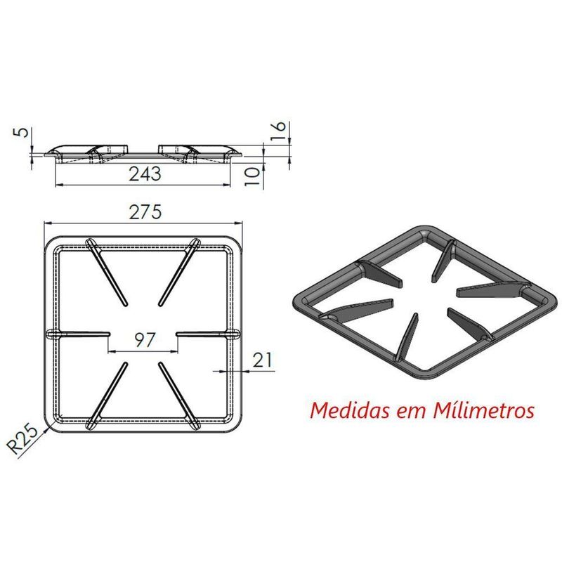 Grelha 6 Hastes Gb Fogão Industrial De Ferro Fundido 27x27cmGrelha 6 Hastes GB Fogão Industrial de Ferro Fundido 27x27cmAs grelhas de fogão industrial são componentes importantes que desempenham diferentes funções em cozinhas comerciais e industriais. Escolher a grelha certa depende das necessidades específicas da cozinha industrial, incluindo o tipo de alimentos preparados, o tamanho e o peso das panelas, e a quantidade de calor necessária para a cocção eficiente. Alguns dos benefícios são, Distribuição Uniforme de Calor: Garantem cocção uniforme dos alimentos. Suporte estável: Oferecem estabilidade para panelas e frigideiras de diversos tamanhos. Durabilidade e Resistência: Suportam altas temperaturas e grandes pesos. Eficiência na Cocção: Melhoram a transferência e manutenção do calor. Segurança: Previnem escorregões e aumentam a segurança na cozinha. Escolha a grelha que melhor se adapta às suas necessidades e garanta uma cocção eficiente e segura.Diferença entre grelhas:4 Hastes: Ideal para panelas menores e uso leve.6 Hastes: Perfeita para suportar uma variedade de panelas e garantir uma cocção uniforme.8 Hastes: Máxima estabilidade e distribuição de calor para panelas grandes e pesadas.Características do Produto:Distância das Hastes: 9,7cm.Comprimento: 27cm.Largura: 27cm.Peso: 1,272Kg.Altura: 2,6cm.Itens Inclusos:01 Grelha 6 Hastes GB Fogão Industrial de Ferro Fundido 27x27cm.Código: 93908LBProdutoLojaPlast.