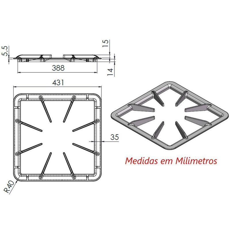 Grelha 8 Hastes Gb Fogão Industrial De Ferro Fundido 40x40cmGrelha 8 Hastes GB Fogão Industrial de Ferro Fundido 40x40cmAs grelhas de fogão industrial são componentes importantes que desempenham diferentes funções em cozinhas comerciais e industriais. Escolher a grelha certa depende das necessidades específicas da cozinha industrial, incluindo o tipo de alimentos preparados, o tamanho e o peso das panelas, e a quantidade de calor necessária para a cocção eficiente. Alguns dos benefícios são, Distribuição Uniforme de Calor: Garantem cocção uniforme dos alimentos. Suporte estável: Oferecem estabilidade para panelas e frigideiras de diversos tamanhos. Durabilidade e Resistência: Suportam altas temperaturas e grandes pesos. Eficiência na Cocção: Melhoram a transferência e manutenção do calor. Segurança: Previnem escorregões e aumentam a segurança na cozinha. Escolha a grelha que melhor se adapta às suas necessidades e garanta uma cocção eficiente e segura.Diferença entre grelhas:4 Hastes: Ideal para panelas menores e uso leve.6 Hastes: Perfeita para suportar uma variedade de panelas e garantir uma cocção uniforme.8 Hastes: Máxima estabilidade e distribuição de calor para panelas grandes e pesadas.Características do Produto:Comprimento: 40cm.Largura: 40cm.Peso: 4,147Kg.Altura: 2,9cm.Itens Inclusos:01 Grelha 8 Hastes GB Fogão Industrial de Ferro Fundido 40x40cm.Código: 93476LBProdutoLojaPlast.