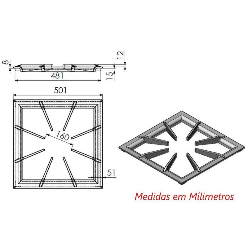 Grelha 8 Hastes Reforçada Glc Fogão Industrial Ferro 50x50cm