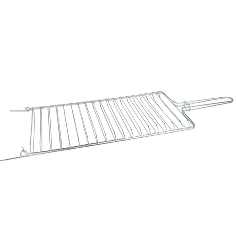 Grelha Dobrável Abaulada Para Churrasqueira 18x60 CmGrelha Dobrável Abaulada para Churrasqueira 18 x 60cm A grelha dobrável abaulada em aço galvanizado permite que se trabalhe com vários tipos de carnes ao mesmo tempo. Além de outros complementos como queijo provolone, pimentão, linguiças, tomates, cebolas e etc… Ela favorece as carnes sem osso, em detrimento das carnes com osso como a costela. Portanto as carnes mais indicadas para a grelha são a picanha, a maminha, o assado de tiras (Tiras muito finas de costela), linguiças, salsichas, chuleta, vazio ou fraldinha e o filé mignon. Especificações técnicas: Largura: 18cm Comprimento: 60cm Peso: 0,324kg Código do produto: 1001undefined
