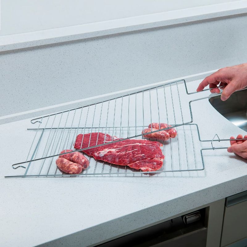 Grelha Dupla para Carne Utimil Pequena em Aço Cromado