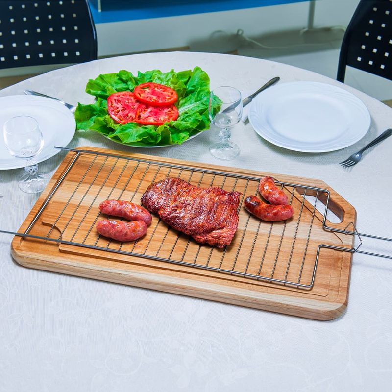 Prepare deliciosos churrascos com praticidade! Esta Grelha dupla da Utimil possui um novo sistema de abrir e fechar e é composta de duas partes independentes, facilitando na hora do preparo e no momento de servir. Com tamanho menor acomoda até 1kg de carne.