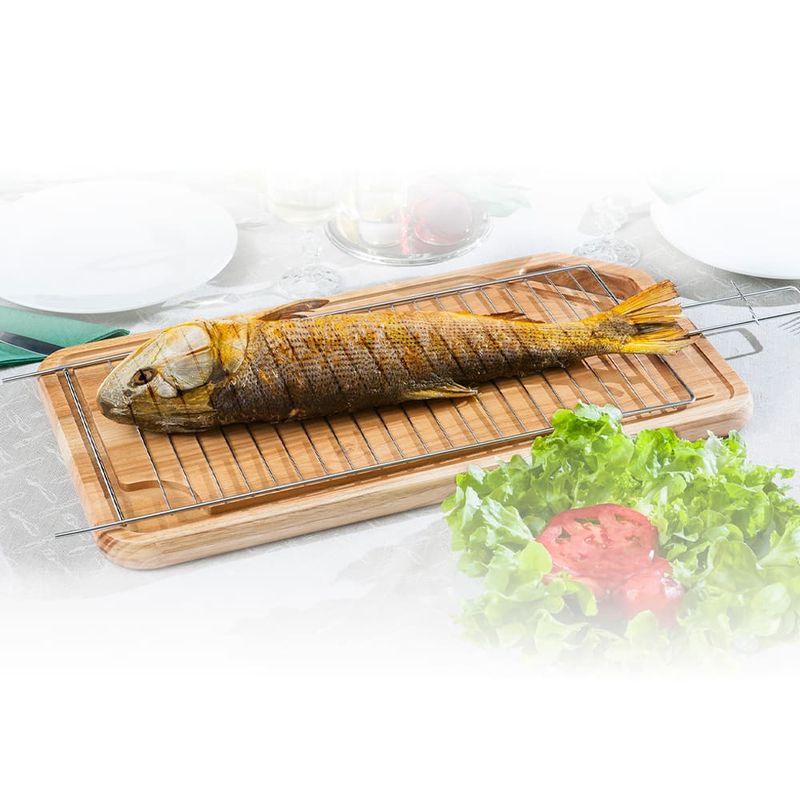 A Grelha Dupla da Utimil possui novo sistema de abrir e fechar e é composta por duas partes independentes que facilitam na hora do preparo e no momento de servir. Com largura de 24 cm e comprimento de 74 cm serve para assar peixe de tamanho médio, até 2kg. Pode ser usada também para assar carnes. Perfeita para preparar deliciosas receitas na brasa.