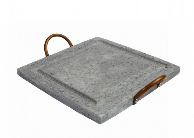 Grelha Para Carnes Servir Porção em Pedra Sabão G 25x25cm Ela é antiaderente naturalmente, o que facilita sua higienização (limpeza) e termicamente considerada inerte, ou seja, demora esfriar o alimento. Sua utilização pela população local baseia-se no preparo de carnes, grelhados, peixes e etc. Surpreenda sua família e amigos servindo aquele saboroso churrasco nesta grelha de pedra com alças em cobre. Além de poder grelhar a carne diretamente na pedra, também é possível aquecer a pedra e usá-la para servir porções quentes por mais tempo, pois ela se manterá quente mesmo após retirar do fogo. Especificações Técnicas: Comprimento: 25cm. Largura: 25cm. Altura: 2cm. Peso: 3,1Kg. Itens Inclusos: 01 Grelha Para Carnes Servir Porção em Pedra Sabão G 25x25cm. Código: 003-INDSJ.