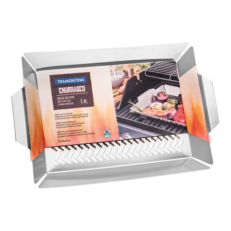 A Grelha Multiuso Aço Inox 47 x 30 cm da linha Cosmos é totalmente produzida em aço inox, sendo uma boa opção para os amantes de um churrasco no final de semana. A peça é indicada para churrasqueiras a gás e a carvão. Seu material é resistente a altas temperaturas, mantendo suas características originais por mais tempo. O produto é perfurado, permitindo que o alimento seja defumado. Aproveite esta novidade!