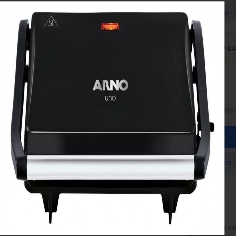 Grill Arno Compacto GPTO Preto - 110VPraticidade e segurança para suas refeições do dia a dia!O Grill Compacto GPTO da Arno é ideal para quem busca facilidade e eficiência na hora de preparar diversos alimentos. Compacto, leve e funcional, ele oferece uma placa antiaderente em formato grelha, garantindo um preparo rápido e uma limpeza descomplicada.A placa superior ajustável adapta-se perfeitamente à altura do alimento, oferecendo maior versatilidade no preparo. A alça permanente e fria ao toque proporciona maior segurança durante o uso, enquanto a trava lateral assegura um fechamento firme e confiável.Conta ainda com um indicador de luz vermelha, que sinaliza quando o produto está ligado e aquecido, permitindo que você acompanhe o preparo da sua refeição com total controle.Especificações Técnicas:Voltagem: 110VPlaca superior: AjustávelPlaca antiaderente em formato grelha: SimAlça permanente e fria ao toque: SimTrava lateral de segurança: SimIndicador de luz vermelha: SimAltura: 20 cmLargura: 8 cmProfundidade: 20 cmPeso: 1,6 kgGarantia do Fabricante: 12 meses