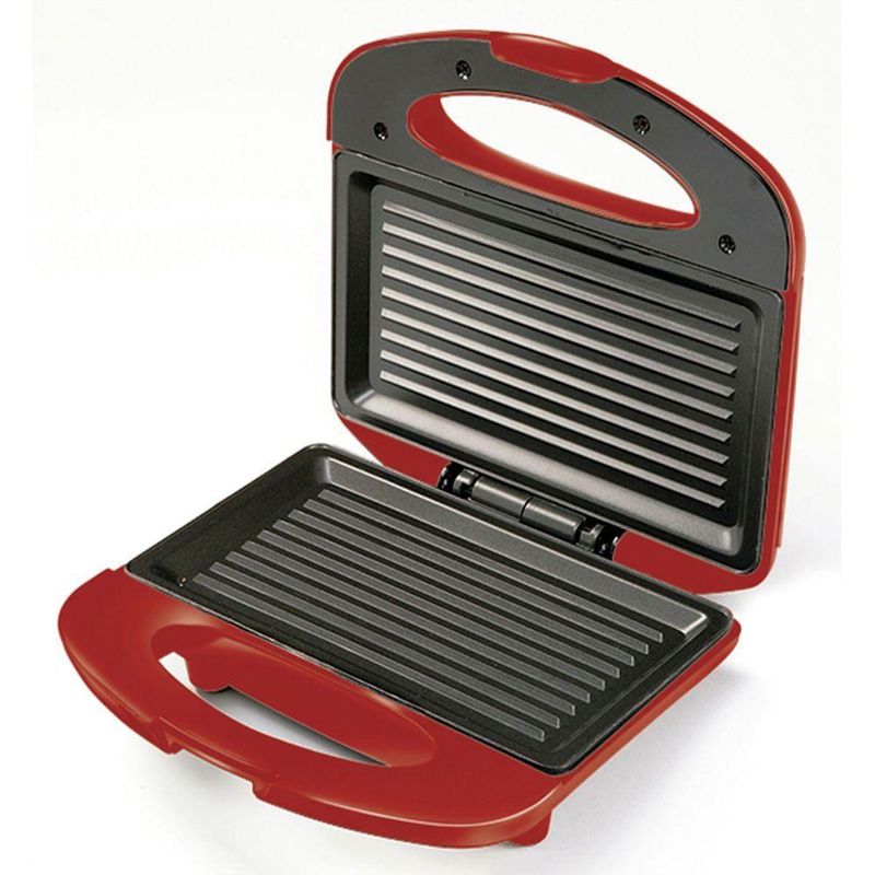 Grill E Sanduicheira Mondial Inox Red S-19 Sanduicheira-220v-vermelho/inoxCom a Inox Grill Red Premium você prepara seus sanduíches e grelhados de forma prática e saudável. O aparelho na cor vermelha dá um toque de estilo na sua cozinha e, com seus 800W de potência, os alimentos ficam prontos em um piscar de olhos. Sua grelha dupla antiaderente evita que os alimentos grudem no aparelho, dispensando o uso do óleo e facilitando a limpeza. As lâmpadas-piloto indicam seu funcionamento e a trava de fechamento permite a perfeita acomodação dos alimentos no interior do grill.Modelo - S-19Cor - Vermelho/InoxVoltagem (Tensão) - 127V/220VItens inclusos - 01 Sanduicheira - Manual de InstruçõesComprimento do cabo - 1,50mLuz indicadora - SimBandeja coletora - NãoControle de temperatura - NãoTipo de preparo - Sanduíches e grelhadosTipo de tomada - 10ATipo de Chapa - AntiaderentesGuarda fio - SimAntiaderente - SimAlimentação - Energia ElétricaMaterial - PPPotência - 800WPeso - 1,200kgGarantia - 1 ano
