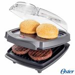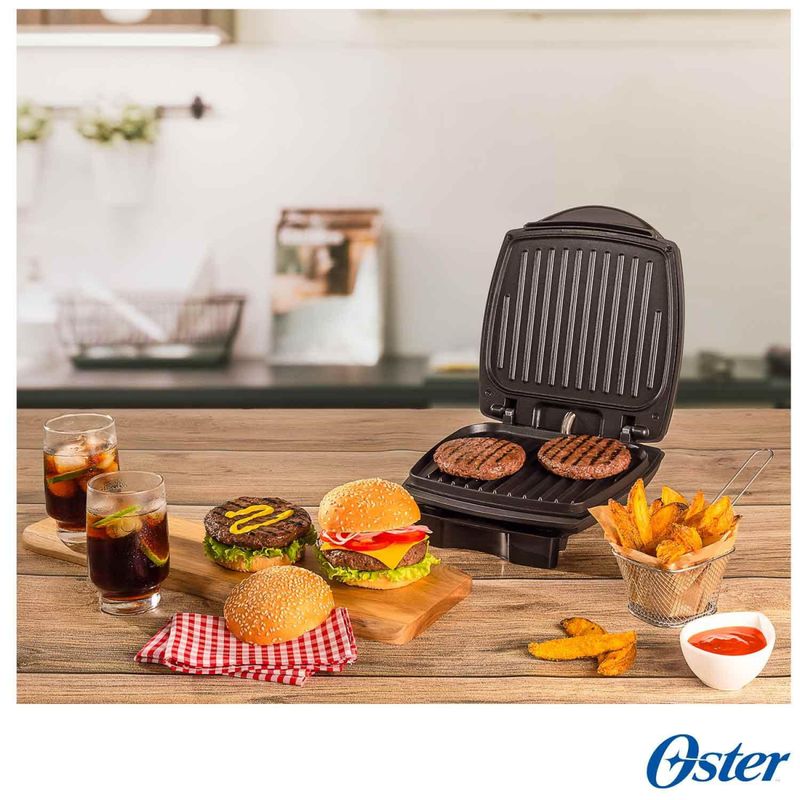Grill Elétrico Burguer 2 em 1 Oster com Capacidade para 04 Fatias - OGRL500O novo Grill Burguer 2 em 1 da Oster é o produto ideal para quem busca praticidade e versatilidade na hora de preparar os alimentos. Com capacidade para até 04 fatias de hambúrguer, esse grill oferece uma grelha e uma chapa para o preparo dos alimentos, além de uma estufa para aquecer pães e queijos.Uma das principais vantagens do Grill Burguer 2 em 1 é sua facilidade de limpeza. Com placas de revestimento antiaderente e design inclinado, esse grill não gruda os alimentos e não acumula gordura, proporcionando uma experiência livre de sujeira e facilitando a limpeza após o uso. Além disso, o produto vem acompanhado de uma bandeja coletora de gordura, que ajuda a manter a cozinha limpa e organizada.O Grill Burguer 2 em 1 também se destaca pela sua funcionalidade e praticidade. Com alças antitérmicas, ele pode ser manuseado com segurança durante o uso. Além disso, possui um porta-fio integrado, que facilita o armazenamento e evita que os fios fiquem soltos pela cozinha. Compacto, ele ocupa pouco espaço e pode ser guardado facilmente depois de usado.Características:- Tipo: Grill- Funções: 03- Capacidade: 04 fatias- Revestimento antiaderente- Alças antitérmicas- Bandeja coletora de gordura- Lâmpada piloto- Porta-fioEspecificações Técnicas:- Modelo: OGRL500- Potência: 1000W- Consumo de Energia: 1,0 kw/h- Cor: Cinza- Voltagem: 220V- EAN: 7898615987778- Garantia: 12 mesesDimensões e Peso:- Dimensões do produto sem embalagem (AxLxP): 305x272x175 mm- Dimensões do produto com embalagem (AxLxP): 325x700x295 mm- Peso do produto sem embalagem: 2,15 Kg- Peso do produto com embalagem: 9,23 KgItens Inclusos:- 01 Grill