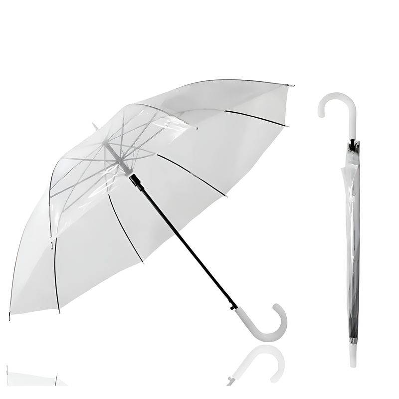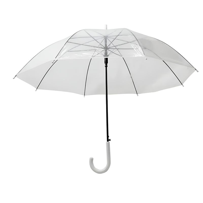 Proteja-se da chuva sem comprometer o visual. Este guarda-chuva transparente em formato de cúpula oferece ampla cobertura, protegendo cabeça e ombros sem bloquear a visão. Conta com estrutura resistente de 7 varetas, abertura manual suave e cabo tipo bengala ergonômico, garantindo conforto e praticidade no uso diário. Leve e resistente a ventos moderados, é ideal para eventos, ensaios fotográficos ou para o dia a dia com mais sofisticação. Especificações Técnicas: Material: PVC Dimensões (aberto): 81 cm (altura) x 112 cm (diâmetro) Estrutura: 7 varetas Punho: Tipo bengala Cor: Transparente Itens Inclusos: 01 Guarda-chuva