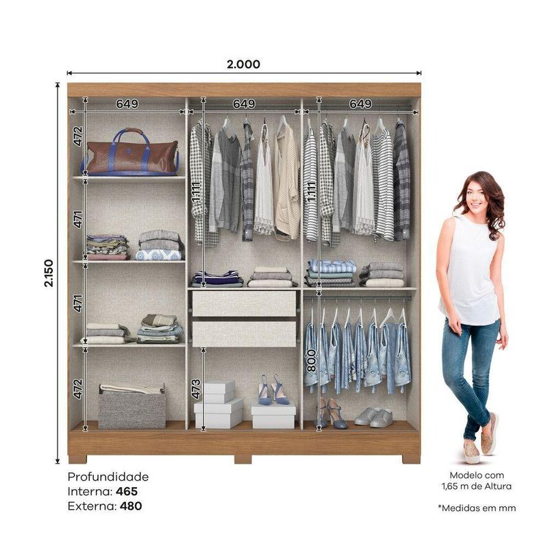 Guarda Roupa 3 Portas Deslizantes 2 Gavetas E Pés Em Abs Nature Com Off WhiteO Roupeiro 03 Portas Deslizantes e 02 Gavetas B376 e a solucao perfeita para manter seu ambiente organizado. Com amplo espaco interno, ele conta com 2 gavetas com corredicas metalicas, porta com apliques ripados e uma porta com espelho de 1250 x 350 mm. Seus puxadores na cor bronze, pes em ABS e cabideiro e calceiro de madeira revestida garantem durabilidade e resistencia. Este movel e o toque que faltava para compor o seu quarto com praticidade e estilo.CARACTERISTICAS GERAIS: Estilo: Moderno Linha ou Colecao: B376 Ambiente Principal: Quarto Marca: Briz Complexidade de Montagem: Alta: Deve ser montado por um montador especializado. Itens Inclusos: 1 Guarda Roupa e Instrucao de Montagem ATENCAO / IMPORTANTE: Sistema de Montagem: Parafusos e Cavilhas A Loja Fornece Montador? Nao Montagem Flex: Nao Complexidade de Montagem: Alta: Deve ser montado por um montador especializado. O produto sera entregue desmontado, nao disponibilizamos servico de montagem ou instalacao, porem, todos os produtos acompanham Kit Ferragens e Manual para montagem bem intuitivo. Recomendacoes de Uso, Manutencoes e Limpeza: Para limpeza de seu movel, use uma flanela limpa e seca. Nao utilize produtos quimicos que possam danificar o produto. As imagens sao meramente ilustrativas. As cores podem sofrer alteracoes devido a luminosidade, monitor e a percepcao do usuario. Desmontagens, subir escadas, elevadores ou transporte por guincho para apartamentos, e suas despesas sao a cargo do cliente. Eletros, Eletronicos e decoracoes nao acompanham o produto. Peso Suportado: Os pesos suportados pelo produto devem ser distribuidos uniformemente no produto. Para garantir a qualidade do produto, e imprescindivel realizar a conferencia no momento da entrega e, se houver qualquer tipo de divergencia, e essencial contatar imediatamente a loja. Nossa garantia e contra defeitos de fabricacao, a qual tem um prazo de 3 meses contados a partir da data de entrega do produto. Nossa garantia NAO cobre defeitos por uso inadequado, abusivo ou falta de cuidados com o produto. FICHA TECNICA: Cor Nature: Pintura UV Texturizada Fosco : Pintura UV Brilho Cor Preto HP: Pintura UV Texturizada Fosco Medidas Montado (A x L x P): 215 x 199,5 x 48 Cm Peso Montado: 105 Kg Cor Interna: Trama (Bege Acinzantado) Material do Fundo: MD Possui Espaco para Vestidos Longos: Nao Possui Maleiro: Nao Possui porta Objetos: Nao Qtd. Portas: 3 Und. Tipo Porta: Correr Material da Porta: MDP Tipo de Puxador da Porta: Externo Material do Puxador Porta: ABS Qtd. Gavetas: 2 Und. Material da Gaveta: MDF/MDP Tipo de Gaveta: Externa Material da Corredica: Metalica Simples Peso Maximo por Gaveta: 3 Kg Possui Organizador de Gaveta: Nao Qtd. Prateleiras: 3 Und. Material da Prateleira: MDP Peso Maximo por Prateleira: 8 Kg Qtd de Pes: 6 Und. Material dos Pes: ABS Altura Pes/Rodapes: 5 Cm Pes Regulaveis: Nao Possui Espelho: Sim Tipo de Fixacao do Espelho: Parafusos Quantidade de Espelhos:1 Und. Medida do Espelho: 1250 x 350 mm Possui Vidro: Nao Produto Suporta ate (Kg): 90 Kg Material Principal: MDP Informacoes Complementares: Cabideiro e calceiro de madeira revestidos 02 gavetas com corredicas metalicas 03 portas deslizantes Porta com apliques ripados Porta com espelho 1250x350 mm Puxadores na cor bronze Espessura da Estrutura (mm): 15mm
