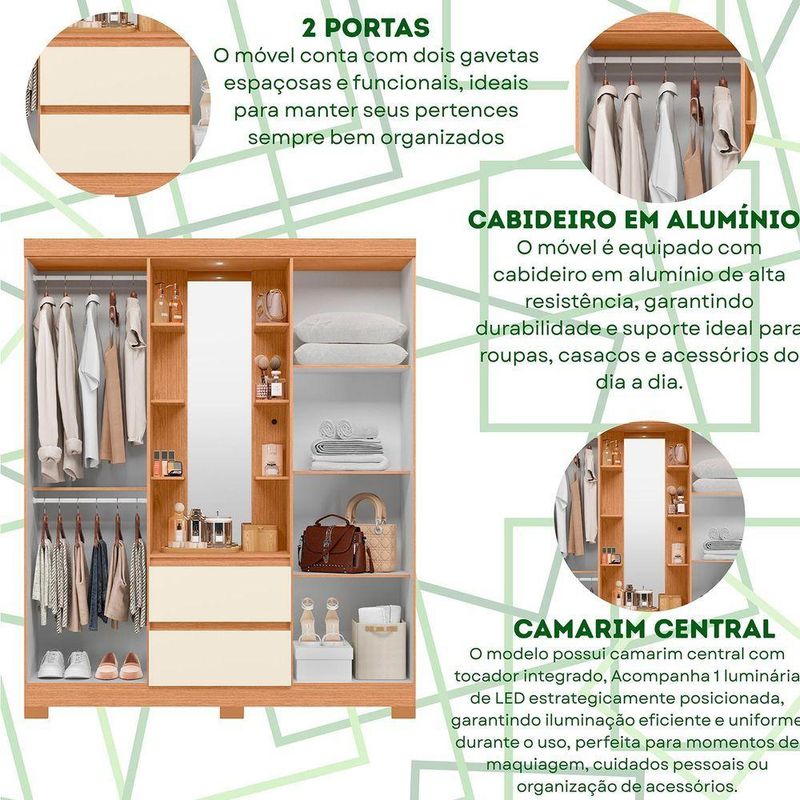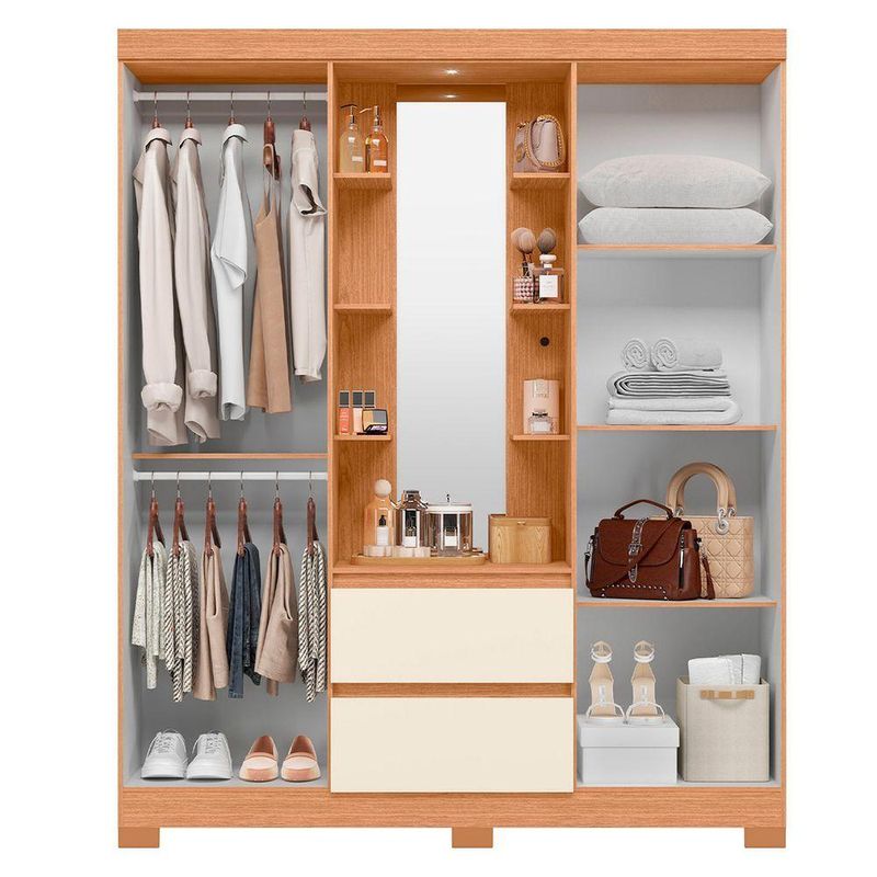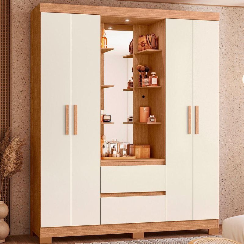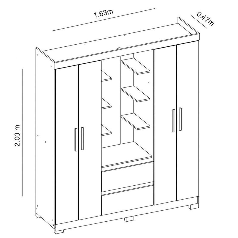 Guarda Roupa 4 Portas 2 Gavetas Quarto Olimpia Freijo Com Off White - AlbatrozCom visual contemporâneo e excelente aproveitamento interno, o Guarda-Roupa Olímpia é ideal para quem busca praticidade e elegância no quarto.Seu design valoriza linhas modernas e acabamento refinado, proporcionando harmonia e sofisticação ao ambiente.O espaço interno é amplo e bem distribuído, com nichos, cabideiros e gavetas que facilitam a organização de roupas, calçados e acessórios.As portas de abrir garantem total acesso ao interior do móvel, enquanto os puxadores discretos reforçam o visual clean e funcional do conjunto.Dimensões:Altura: 200cmLargura: 163cmProfundidade: 47cmObservações:- 4 Portas de abrir com abertura ampla e prática- 2 Gavetas com deslizamento suave- Cabideiros e prateleiras bem distribuídos- Acabamento refinado e resistente- Design moderno que combina com diversos estilos de decoração