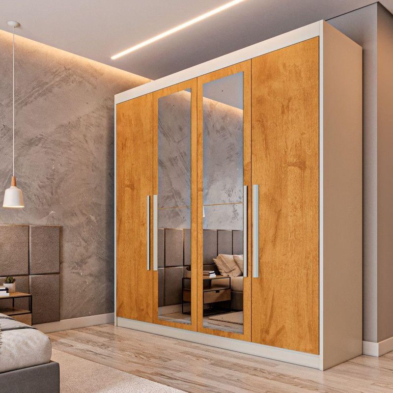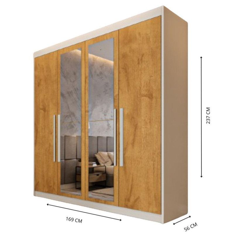 Guarda Roupa 4 Portas Aurora Com Espelho Móveis Europa Off White/perobaSeja bem-vindo a Moveis Europa!Guarda-Roupa 4 Portas Aurora com Espelho O Guarda-Roupa 4 Portas Aurora com Espelho e a escolha ideal para quem deseja unir organizacao e sofisticacao em um unico movel. Seu design moderno e funcional permite um aproveitamento inteligente do espaco, garantindo que todos os seus pertences fiquem bem distribuidos. Equipado com costas parafusadas, o Aurora oferece maior estabilidade e durabilidade, alem de um acabamento refinado que transforma qualquer ambiente. Pensado para proporcionar praticidade no dia a dia, conta com compartimentos estrategicos para malas e roupas de cama, alem de uma sapateira com corredicas telescopicas que mantem seus calcados organizados e sempre ao alcance. Seus puxadores externos em madeira, grandes e elegantes, agregam um toque de requinte ao design, tornando-o uma peca essencial para compor sua decoracao. Por que escolher o Guarda-Roupa Aurora? Design sofisticado: Espelho integrado e acabamento semi-brilho para um toque moderno e elegante Ampla capacidade de armazenamento: Com 10 prateleiras e compartimentos especificos Sapateira funcional: Gaveta com corredicas telescopicas para melhor organizacao dos calcados Materiais de alta qualidade: Estrutura 100 MDF com acabamento em verniz UV Seguranca e praticidade: 3 gavetas, sendo 1 com chave para itens pessoais Caracteristicas do produto: Marca: Moveis Europa Modelo: Aurora Material: 100 MDF Acabamento: Verniz UV Escala de brilho: Semi-brilho Quantidade de portas: 04 Quantidade de gavetas: 03 Quantidade de gavetas com chave: 01 Quantidade de prateleiras: 10 Espelho: Sim Material dos cabideiros: Aluminio Costas parafusadas: Sim Corredicas: Telescopicas Material dos puxadores externos: Madeira Compartimento para malas e roupas de cama: Sim Sistema de montagem: Parafuso, minifix e cavilha Dimensoes Altura: 237 cm Largura: 169 cm Profundidade: 56 cm Garantia do Fornecedor: 03 meses (Contra defeito de fabricacao a contar do momento da emissao da Nota Fiscal). Itens inclusos 01 Guarda-Roupa Aurora com espelho 03 gavetas (sendo 1 com chave) 10 prateleiras Cabideiros em aluminio Usos e cuidados Limpar com flanela ou pano macio seco Nao utilizar produtos abrasivos, desengordurantes, alcool ou solventes Evitar exposicao direta a luz solar e a umidade Transforme seu ambiente com o Guarda-Roupa Aurora e tenha mais organizacao, estilo e funcionalidade no seu dia a dia. Agradecemos sua visita e aguardamos sua compra!