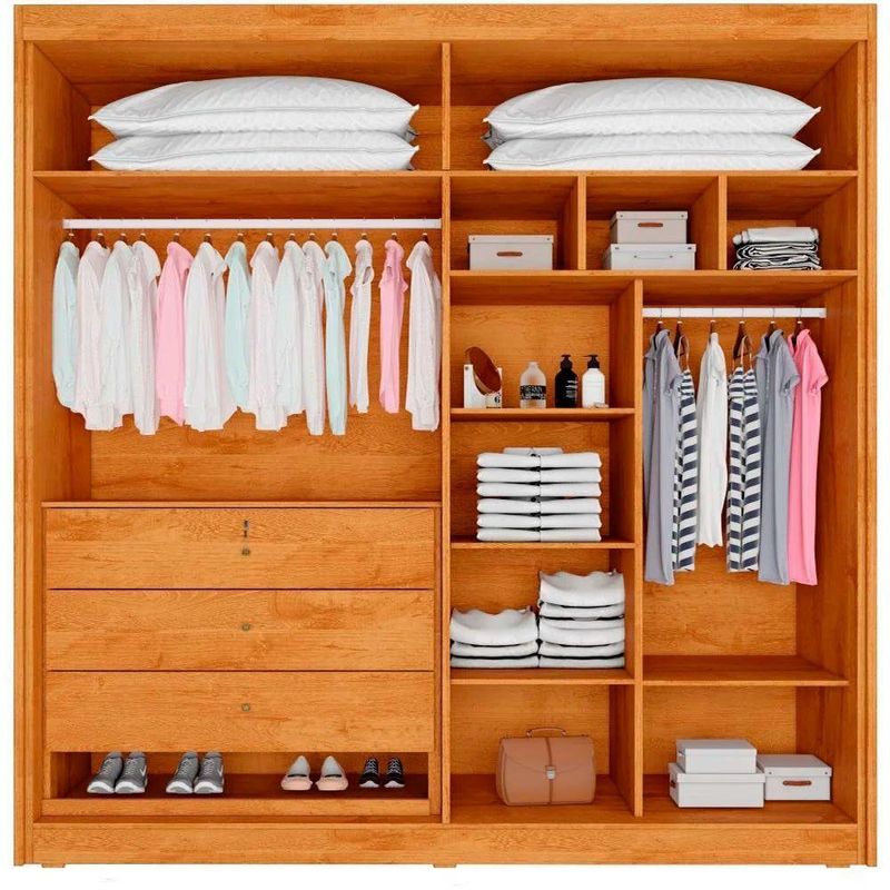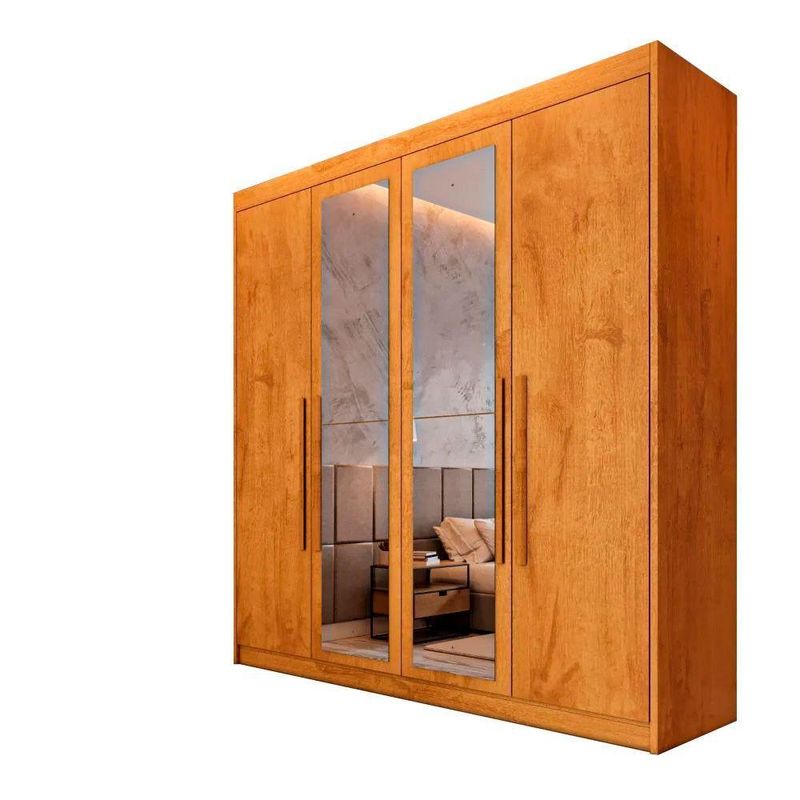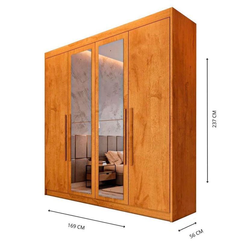 Guarda Roupa 4 Portas Aurora Com Espelho Móveis Europa PeróbaSeja bem-vindo a Moveis Europa!Guarda-Roupa 4 Portas Aurora com Espelho O Guarda-Roupa 4 Portas Aurora com Espelho e a escolha ideal para quem deseja unir organizacao e sofisticacao em um unico movel. Seu design moderno e funcional permite um aproveitamento inteligente do espaco, garantindo que todos os seus pertences fiquem bem distribuidos. Equipado com costas parafusadas, o Aurora oferece maior estabilidade e durabilidade, alem de um acabamento refinado que transforma qualquer ambiente. Pensado para proporcionar praticidade no dia a dia, conta com compartimentos estrategicos para malas e roupas de cama, alem de uma sapateira com corredicas telescopicas que mantem seus calcados organizados e sempre ao alcance. Seus puxadores externos em madeira, grandes e elegantes, agregam um toque de requinte ao design, tornando-o uma peca essencial para compor sua decoracao. Por que escolher o Guarda-Roupa Aurora? Design sofisticado: Espelho integrado e acabamento semi-brilho para um toque moderno e elegante Ampla capacidade de armazenamento: Com 10 prateleiras e compartimentos especificos Sapateira funcional: Gaveta com corredicas telescopicas para melhor organizacao dos calcados Materiais de alta qualidade: Estrutura 100 MDF com acabamento em verniz UV Seguranca e praticidade: 3 gavetas, sendo 1 com chave para itens pessoais Caracteristicas do produto: Marca: Moveis Europa Modelo: Aurora Material: 100 MDF Acabamento: Verniz UV Escala de brilho: Semi-brilho Quantidade de portas: 04 Quantidade de gavetas: 03 Quantidade de gavetas com chave: 01 Quantidade de prateleiras: 10 Espelho: Sim Material dos cabideiros: Aluminio Costas parafusadas: Sim Corredicas: Telescopicas Material dos puxadores externos: Madeira Compartimento para malas e roupas de cama: Sim Sistema de montagem: Parafuso, minifix e cavilha Dimensoes Altura: 237 cm Largura: 169 cm Profundidade: 56 cm Garantia do Fornecedor: 03 meses (Contra defeito de fabricacao a contar do momento da emissao da Nota Fiscal). Itens inclusos 01 Guarda-Roupa Aurora com espelho 03 gavetas (sendo 1 com chave) 10 prateleiras Cabideiros em aluminio Usos e cuidados Limpar com flanela ou pano macio seco Nao utilizar produtos abrasivos, desengordurantes, alcool ou solventes Evitar exposicao direta a luz solar e a umidade Transforme seu ambiente com o Guarda-Roupa Aurora e tenha mais organizacao, estilo e funcionalidade no seu dia a dia. Agradecemos sua visita e aguardamos sua compra!