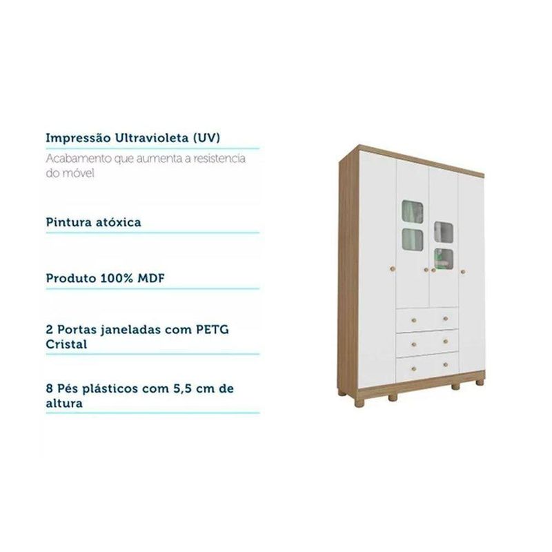 Guarda Roupa 4 Portas C/ (2 Cristal) E 3 Gavetas Uli Branco/amendoa - Peroba Guarda Roupa Infantil c/ 4 Portas (2 Cristal) e 3 Gavetas Uli Branco/Amendoa - PerobaMarca: Móveis PerobaDimensões(Cm): Comprimento(Profundidade): 41,5cm x Largura: 122,1cm x Altura: 188,5cm Material de Estrutura - MDF Tipo de Pintura - Ultravioleta Tipo de Acabamento da Pintura - Semi Brilho Tipo de Acabamento - Efeito Vidro Tipo de Rodapé - Rodapés em MDF Material dos Cabideiros - Cabideira Metálico Tipo de Dobradiças - Dobradiças Metálicas Quantidade de Portas - 4 Portas de Abrir Tipo de Corrediça - c/ Corrediças Telescópicas Quantidade de Gavetas - 3 Tipo dos Pés - ABS/PVC Quantidade de Prateleiras - 5 Montagem do Produto - Desmontável Certificação de Qualidade - Qualidade Aprovada Garantia - Garantia de 90 DiasImagens Meramente Ilustrativas.Não nos responsabilizamos pela montagem/instalação dos produtos.Todas as informações divulgadas são de responsabilidade exclusiva do fabricante/fornecedor. Tipo de Puxador: Puxador em ABS / PVC | Quantidade de Portas: 4 Portas de Abrir | Quantidade de Gavetas: 3 | Quantidade de Prateleiras: 5 | Tipo de Pintura: Ultravioleta | Tipo de Acabamento da Pintura: Semi Brilho | Material de Estrutura: MDF | Tipo dos Pés: ABS/PVC | Tipo de Dobradiças: Dobradiças Metálicas | Tipo de Corrediça: c/ Corrediças Telescópicas | Garantia: Garantia de 90 Dias | Certificação de Qualidade: Qualidade Aprovada | Material dos Cabideiros: Cabideira Metálico | Tipo de Acabamento: Efeito Vidro | Montagem do Produto: Desmontável | Tipo de Rodapé: Rodapés em MDF | Código universal de produto (GTIN): 7898593997745 | Produto precisa de Montagem?: Sim, a montagem é simples mas sugerimos a contratação do nosso serviço de montagem (para os CEPs em que o serviço está disponível) ou de algum profissional experiente de sua preferência | Descrição do Tamanho: 188.50x:122.10x41.50 cm | Estado de Origem: RJ | País de origem: Nacional | Peso Produto Com Embalagem (Kg): 69.85 | Material para Filtro: N/I | Cor Mobly: N/I | Condição do Item: Novo | Link Site: https://www.costaricacolchoes.com.br/produtos/35755S6644/ | Numeral: 0 | Não se Aplica: N/A | Não Possui: Não | Linha/Modelo: Quarto Uli | Cor Cnova: Blush | Cor Meli: Branco | Categoria - Sub: Guarda Roupa Infantil | Categoria - Pai: Quarto do Bebê | Comprimento Embalagem: 187.10 | Largura Embalagem: 41.00 | Altura Embalagem: 19.00 | Peso: 69.85 Kg | Kit: 0 | Peso Real Kg: 69.85 | Peso Cubado: 32.65 | Volumes: 3 | M3: 0.13 | Comprimento/Profundidade: 42 cm | Largura: 122 cm | Altura: 188 cm | Tamanho Montado: Larg:122.10 x Comp/Prof:41.50 x Alt: 188.50 | Comprimento/Profundidade Montado: 41.50 | Largura Montado: 122.10 | Altura Montado: 188.50 | MPN: 4955.87 | Cor Fabricante: Branco/Carvalho | Marca: Móveis Peroba | Fabricante: Móveis Peroba | Linha: Quarto Uli
