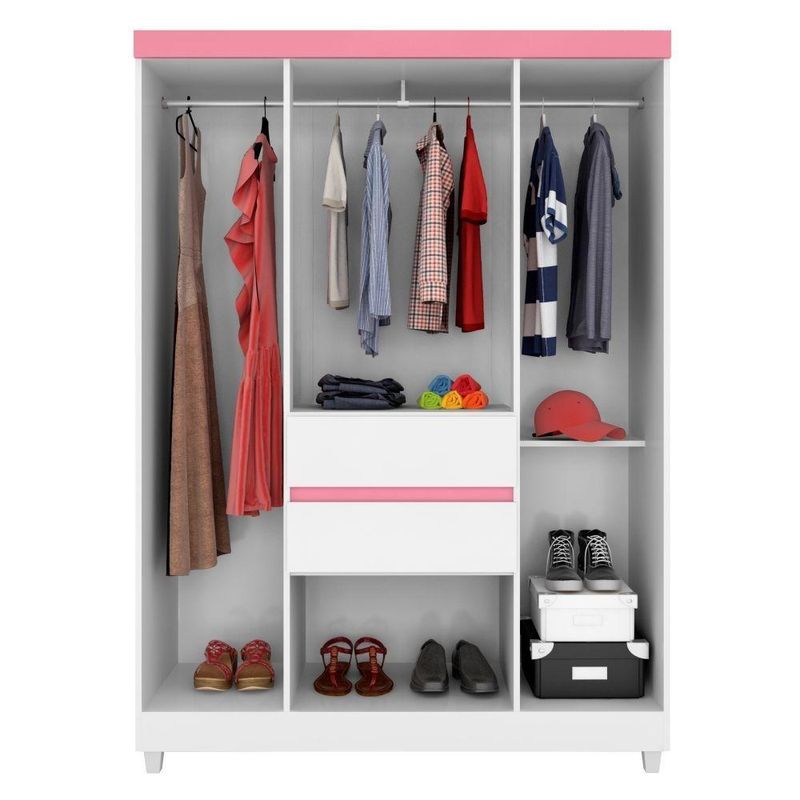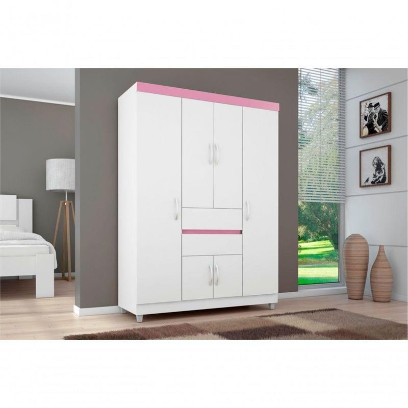 Guarda Roupa 6p Dresden Branco/rosa/brancoO Guarda Roupa é a escolha certa para o seu quarto, com amplo espaço para roupasFeito em MDP, além de possuir 6 portas, 2 gavetas, 1 prateleira e cabideiro.Medidas Do Produto:Altura: 181 cmLargura: 128 cmComprimento: 47 cmInformações Complementares:Cor: Branco/Rosa/BrancoAcompanha Espelho: NãoGavetas: Sim (2)Prateleiras: Sim (1 internasPortas: Sim (6)Pés: Sim (4)Material: MDPItens Incls:- 01 Guarda Roupa;- Kit completo para montagem, Manual detalhado de instruções para montagem.Garantia:3 meses contra de fabricação.Informações Adicionais:- Fotos meramente ilustrativas do produto no ambiente.- Os objetos que ambientam as fotos não acompanham o produto;- Verificar descrição e tamanho do produto antes da compra.- ou s.- Mantenha as informações de contato e endereço de atualizados para entrarmos em contato caso necessário.- Limpar com flanela ou pano macio seco, não utilizar produtos abrasivos, desengordurantes, álcool ou solvente. Não expor o produto diretamente à luz solar e à umidade.* Sugerimos a contratação de um montador para a montagem do produto. Não nos responsabilizamos por s causadas no ato da montagem.* Não nos responsabilizamos pela montagem e desmontagem do produto no ato da e devolução, assim como os custos gerados nestas situações.* A rá o produto no andar térreo do endereço de .* Não nos responsabilizamos por subir escadas, corredores e elevadores ou por guincho em apartamentos.