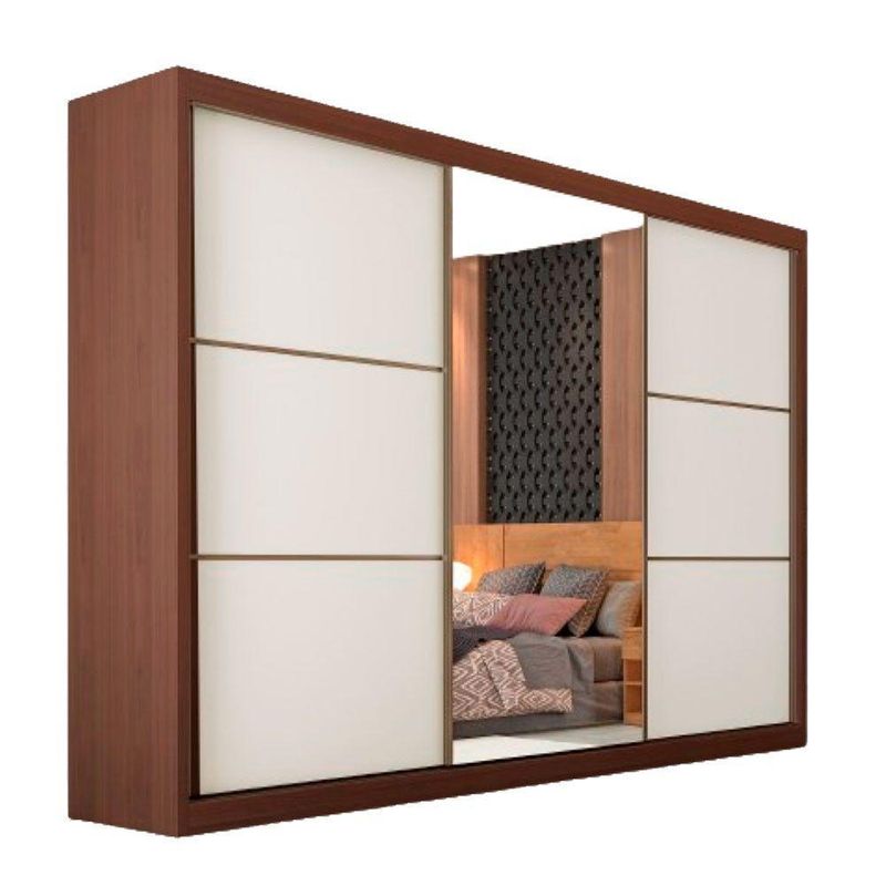 Guarda Roupa Bragança 1 Porta Espelhada 100% Mdf Ipê/off White/ipêO Guarda Roupas Braganca 3 Portas 1 Espelhada MDF - Moveis Europa nao so organiza seu espaco, mas tambem adiciona um charme especial ao seu quarto. O modelo Flexcolor destaca-se pela elegancia e pela capacidade de se integrar a qualquer decoracao. O guarda roupas e equipado com gavetas espacosas que deslizam suavemente gracas as corredicas telescopicas. As portas possuem roldanas com regulagem e trilho inferior em aluminio, garantindo abertura e fechamento suaves e duraveis. Os puxadores embutidos em aluminio bronze junto ao acabamento em Verniz UV e escala de brilho semi-brilho adicionam um toque de sofisticacao ao design. Com compartimentos planejados para malas e roupas de cama, alem de uma divisao pratica ELA e ELE, voce tera a disposicao um espaco interno excepcionalmente bem aproveitado. As 7 prateleiras amplas proporcionam organizacao eficiente para suas roupas e acessorios.Caracteristicas: Materiais: 100 MDF (Madeira de Reflorestamento) Acabamento: Verniz UV Escala de Brilho: Semi-brilho Sistema de Montagem: Parafuso, Minifix e Cavilha Quantidade de Portas: 03 Quantidade de Gavetas: 06 Quantidade de Prateleiras: 12 Corredicas: Telescopicas Puxadores: Aluminio Bronze Espelho: Sim Material do Trilho Inferior: Aluminio Modelo Flexcolor: Sim Divisao: ELA e ELE Dimensoes: Altura: 235 cm Largura: 226 cm Profundidade: 56 cm Peso: 204,40 kg Garantia do fornecedor: 3 Meses Recomendacoes de Uso, Manutencao e Limpeza: Limpar com flanela ou pano macio seco, nao utilizar produtos abrasivos, desengordurantes, alcool ou solvente. Nao expor o produto diretamente a luz solar e a umidade.