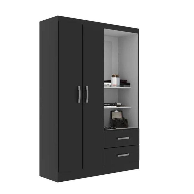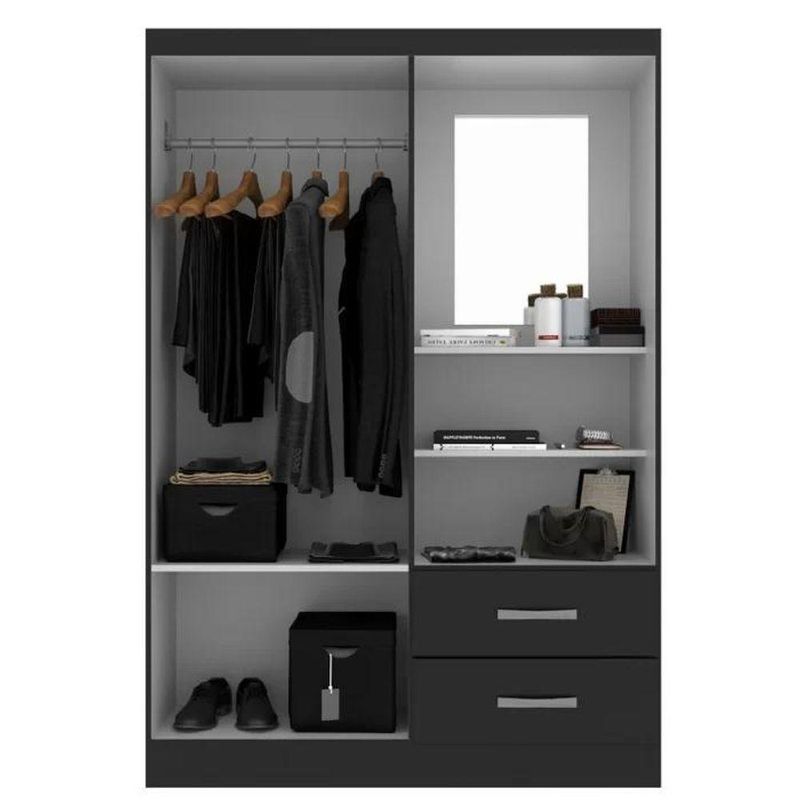 Guarda Roupa Capelinha Solteiro 2 Portas 2 Gavetas Premium - Black BlackO Guarda Roupa Capelinha Evidência com 2 portas e 2 gavetas, sendo as gavetas espaçosas, 2 prateleiras internas e duas prateleiras externas, um cabideiro e um espelho, puxador das gavetas e portas em plástico, possui um nicho, produto ideal para quem está procurando algo boa distribuição de espaço e excelente preço não esquecendo da qualidade.Pesos e DimensõesAltura do Espelho 40 cmLargura do Espelho 40 cmEspessura do Espelho 3 mmAltura (cm) 180 cmLargura (cm) 100 cmProfundidade (cm) 40 cmPeso (kg) 40 kgGarantiaGarantia 03 MesesMateriais e AcabamentosMaterial Principal MDPMaterial da Porta MDPAcabamento da Gaveta LacaEscala de Brilho FoscoEscala de Brilho da Gaveta FoscoAcabamento da Porta LacaMaterial da Gaveta MDPMaterial do Puxador da Gaveta PlásticoTipo de Corrediça da Gaveta PlásticaEscala de Brilho da Porta FoscoMaterial do Puxador da Porta PlásticoTipo de Dobradiça/Corrediça da Porta AlumínioAcabamento da Prateleira LacaEscala de Brilho da Prateleira FoscoMaterial da Prateleira MDPMontagemNecessita Montagem SimComplexidade da Montagem Baixa: pode ser montado por uma pessoa sozinhaSistema de Montagem Parafs, MinifixRecomendações de , Manutenção e Limpeza Utilizar pano úmido NA Cor: Black