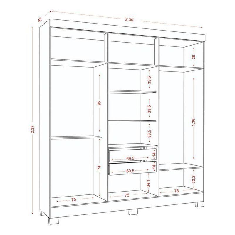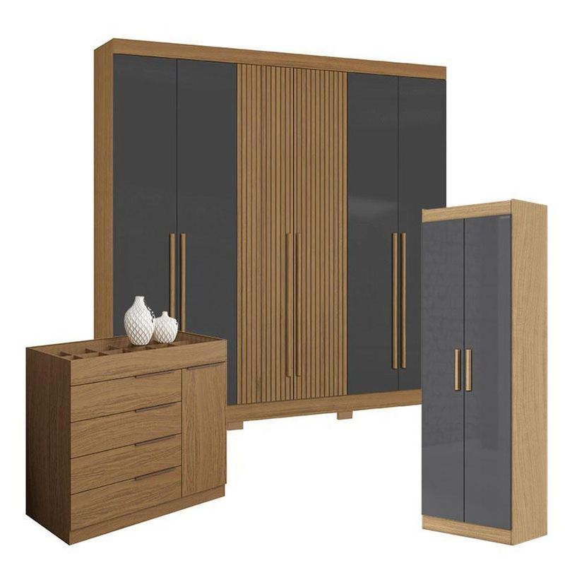 Guarda Roupa Casal 2030230 Com Multiuso 2000191 Atacama Grafite E Cômoda Sevilha Atacama - AramóveisGuarda Roupa Casal 2030230 com Multiuso 2000191 Atacama Grafite e Cômoda Sevilha Atacama - AramóveisBuscando móveis para elevar o nível do quarto e deixá-lo ainda mais moderno e elegante? A Aramóveis desenvolveu com matéria prima de primeira qualidade o Guarda Roupa 2030230 o Armário Multiuso 2000191 e a Cômoda Sevilha, produzidos para oferecer funcionalidade, elegância e durabilidade, proporcionando um amplo espaço interno para manter as roupas, acessórios e objetos pessoais sempre organizados. Contam com designs modernos que se adaptam a todos os espaços, adicionando um charme ao ambiente. Confira as características técnicas e aproveite.Guarda Roupa Casal 2030230 Atacama Grafite - AramóveisCaracterísticas técnicas- Desenvolvido em MDP 12 e 15 mm- Pintura com acabamento texturizado- 6 Portas- Puxadores em MDF- Cabideiro de madeira- 2 gavetas- Corrediças metálicas- Dobradiças metálicas- Detalhes ripados em pintura- Lindo designDimensõesAltura: 235 cmLargura: 230 cmProfundidade: 47 cmArmário Multiuso 2 Portas 2000191 Atacama Grafite - AramóveisCaracterísticas Técnicas:- Desenvolvido em MDP de 12 e 15mm- Puxadores em MDF- 4 Prateleiras- Dobradiças metálicas- Pintura com acabamento texturizado fosco e verniz brilho nas portas- Resistência e durabilidade- Lindo designDimensões:Altura: 182 cmLargura: 60 cmProfundidade: 36 cmCômoda Sapateira Sevilha 2004147 Atacama - AramóveisCaracterísticas Técnicas:- Desenvolvido em MDP 12 e 15mm- 1 Porta- 5 Gavetas- Corrediças metálicas- Dobradiças metálicas- Prateleiras- Amplo espaço- Design modernoDimensões:Altura: 97,3 cmLargura: 110,4 cmProfundidade: 46,8 cmOBS: Não acompanha decorações, roupas, calçados e acessórios.Informações importantes:- Não realizamos a montagem ou instalação do produto, porém acompanha manual de instruções.- Toda mercadoria segue segurada contra qualquer sinistro, em caso de anormalidade, recuse.- As caixas ou pacotes possuem identificação com o nome, cidade e quantidades de volumes relativos à compra para conferencia do recebedor. NA