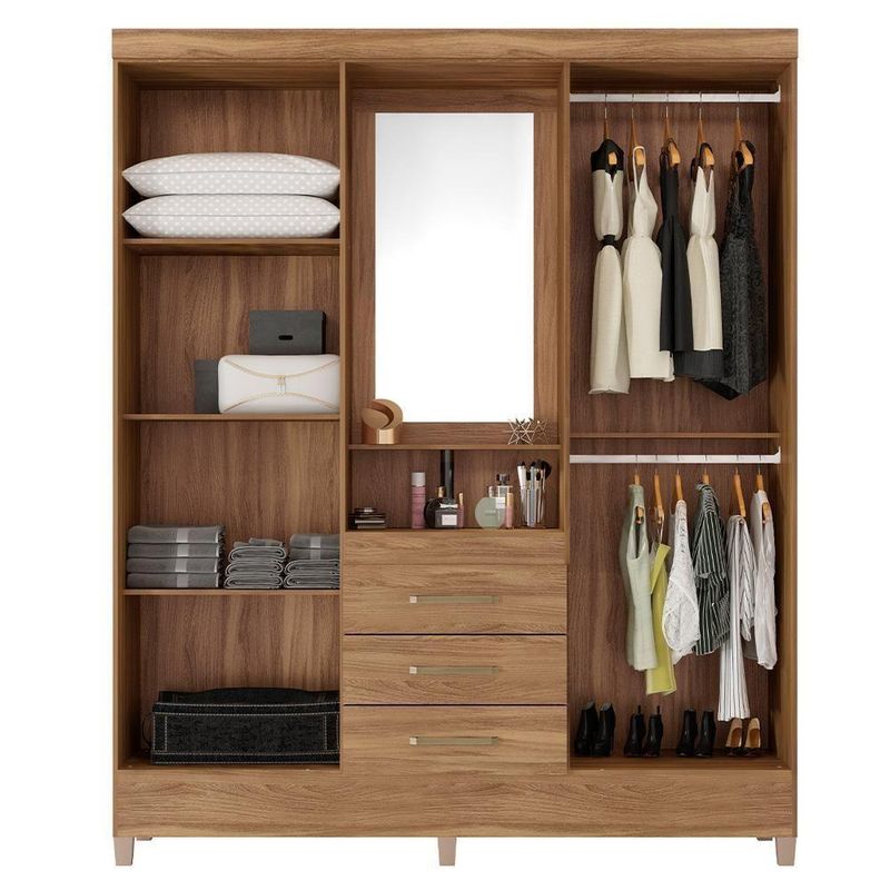Guarda Roupa Casal 4 Portas Capelinha Demóbile AmendolaO guarda-roupa 4 portas Capelinha Demóbile deixa a decoração do seu quarto renovada e ajuda na organização total do seu ambiente. Perfeito para guardar suas roupas e utensílios. Esse guarda-roupa de madeira possui 4 portas e 2 cabideiros que garantem a comodidade de manter seus pertences seguros sem estar expostos. As 3 gavetas externas com deslize perfeito também são de excelente qualidade e ajudam a manter seus acessórios cada vez mais organizados nesse roupeiro. Além disso, esse guarda-roupa 4 portas possui espelho e nicho de decorações que facilitam o seu dia a dia na decoração do ambiente e na utilização de um espelho com medidas generosas. O guarda-roupa com espelho vem com 3 prateleiras internas e 1 externa perfeitas para você ordenar seus objetos da forma desejada. A estrutura em madeira MDP é resistente a umidade e empenamento, além de trazer o acabamento perfeito ao seu produto. Os pés em PVC são de excelente qualidade e capazes de trazer mais durabilidade ao guarda-roupa. Tenha mais organização no seu dormitório com o guarda-roupa Capelinha Demóbile. Aproveite! NA