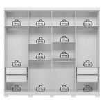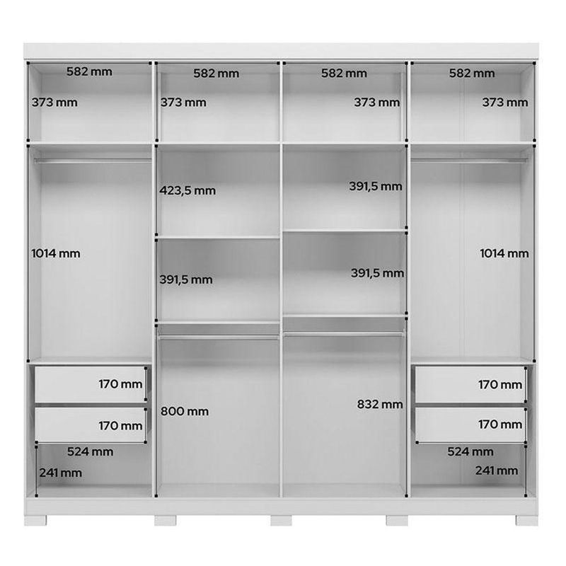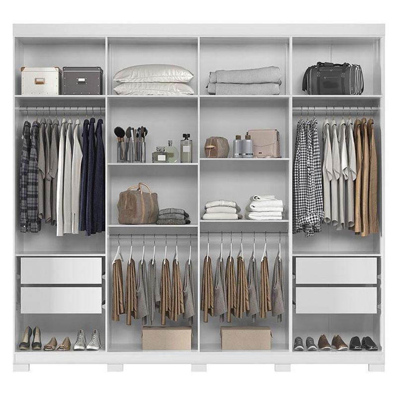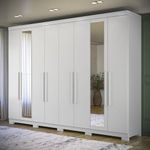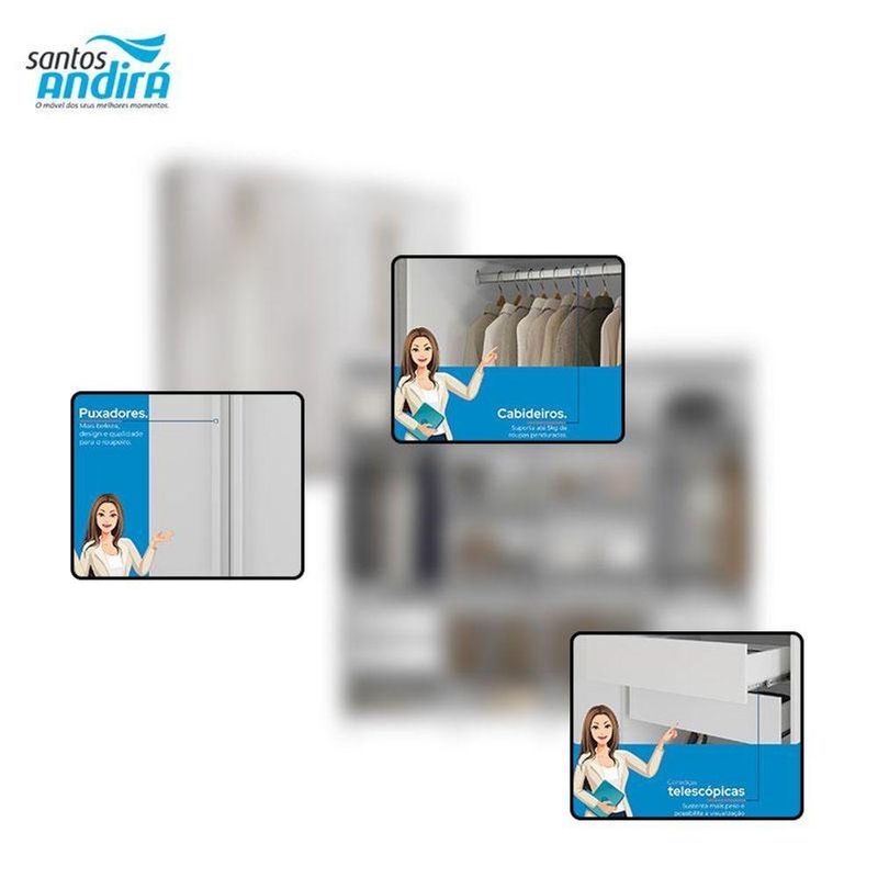 Guarda Roupa Casal 8 Portas 4 Gavetas Master New Com Espelho E Pés Branco Brilho - Santos AndiráGuarda Roupa Casal 8 portas 4 gavetas Master New Branco com espelho e pés Brilho - Santos AndiráGuarda Roupa Casal 8 portas 4 gavetas Master New Branco com espelho e pés Brilho: O Master New 8.4 oferece divisão interna pensada para casal: espaço certo para ele e para ela com gavetas que deslizam macio e prateleiras amplas. Acabamento com textura semi-brilho que dá um ar sofisticado ao ambiente.Características técnicas:- Desenvolvido em MDP- Pintura em Reverse Semi Brilho- 04 gavetas com corrediças telescópicas- Puxadores em MDF revestido- 04 Cabideiros/calceiros em alumínio- 10 Prateleiras- Amplo maleiro- Contém espelho- Contém pésDimensões:Altura: 224 cmLargura: 239 cmProfundidade: 46 cmInformações importantes:* Não acompanha decorações e acessórios* Nossas cargas possuem seguro, portanto, no ato da entrega, confira a quantidade de volumes recebida, e também o estado da embalagem. Se houver qualquer inconsistência, não assine o comprovante de entrega;* O armazenamento do produto no endereço de entrega é de responsabilidade do comprador. Evite apoiar o produto na vertical, bem como evite áreas que deixem o produto exposto a chuva ou umidade excessiva;* Pequenas variações de tonalidade são possíveis, em razão da diferença de resolução da tela onde o anúncio está sendo visualizado. Se notar diferença expressiva, comunicar a empresa antes de efetuar a montagem;* O serviço de entrega contratado contempla a entrega até a primeira área coberta ou portaria, não sendo coberto o ato de subir escadas/elevadores ou adentrar nas residências;* Não nos responsabilizamos pela montagem, desmontagem ou instalação do produto.