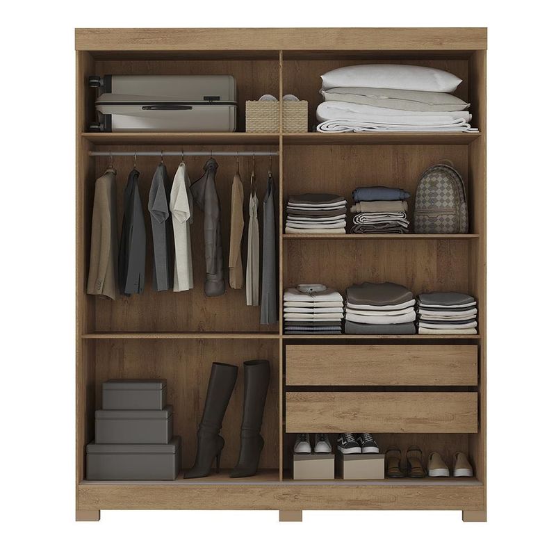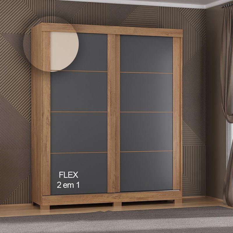 Guarda-Roupa Casal Atualle Montana 2 Portas de Correr 2 Gavetas Flex Grafite Off WhiteTransforme seu quarto com estilo e praticidadeO Guarda-Roupa Casal Atualle Montana 2 Portas de Correr 2D Flex Grafite Off White é ideal para quem busca unir design moderno, amplo espaço interno e alta funcionalidade em um só móvel.Organização, elegância e funcionalidade em um só móvel para o seu quarto!Sistema Flex com portas reversíveisMonte do seu jeito! Com o exclusivo sistema Flex, você pode personalizar o guarda-roupa conforme seu gosto. As portas são reversíveis, com frente em grafite de um lado e off white do outro, permitindo criar o visual perfeito para combinar com a decoração do seu quarto.Principais vantagens do Guarda-Roupa Montana Amplo espaço interno: Perfeito para casais, com prateleiras, gavetas, maleiros e cabideiro bem distribuídos para organização completa. Design moderno e sofisticado: Acabamento em alto brilho com painéis decorativos que agregam charme e elegância ao ambiente. Portas de correr com trilho de alumínio: Garantem praticidade e silêncio no dia a dia, ideal para ambientes compactos. Durabilidade e resistência: Estrutura em MDP e portas em MDF com pintura UV para maior vida útil. Versatilidade e funcionalidade: Layout interno planejado para atender diferentes necessidades de armazenamento.Por que escolher o Guarda-Roupa Montana da Atualle Móveis?Porque ele reúne tudo o que você procura: elegância, funcionalidade e ótimo custo-benefício. Com design moderno e acabamento rústico sofisticado, o Roupeiro Montana é a escolha certa para quem deseja um quarto sempre organizado, bonito e atual.