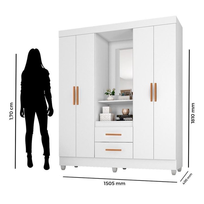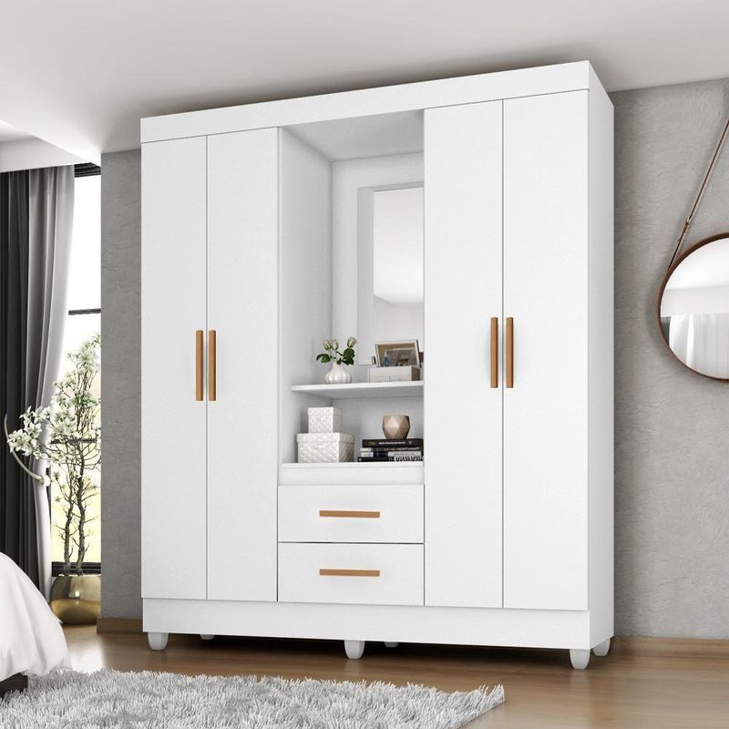 Guarda Roupa Casal Capela Branco Brilho - Móveis LeãoGuarda Roupa Casal Capela Branco Brilho - Móveis LeãoGuarda-Roupa Casal Capela da Móveis Leão, na cor Branco Brilho, ideal para quem busca elegância e funcionalidade. Possui ótimo espaço interno para organizar roupas e acessórios, com design moderno que valoriza o ambiente. Acabamento brilhante, resistente e fácil de limpar, perfeito para deixar o quarto mais bonito e organizadoCaracterísticas Técnicas- Material da estrutura em MDP- Acabamento em pintura U.V- 4 Portas- 3 Gavetas- Cabideiros em alumínio- Prateleiras- Dobradiças metálicas- Corrediças telescópica- Puxadores em MDF- Possui espelho- Amplo espaço interno- Design modernoDimensões:Altura: 181 cmLargura: 165 cmProfundidade: 47 cmAtenção: Não nos responsabilizamos pela montagem ou instalação do produto, porém acompanha manual de instruções.Importante: Imprescindível a conferência no ato da entrega. Em caso de anormalidade, recuse.