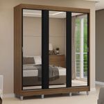 Guarda-roupa Casal Com Pés 3 Portas De Correr De Espelho Rustic/preto Reno MadesaO Guarda-Roupa Casal Reno da Madesa é a escolha perfeita para quem busca um ambiente moderno, organizado e funcional.Com três portas de correr que deslizam suavemente graças aos trilhos de alumínio, o guarda-roupa otimiza o espaço, garantindo praticidade no dia a dia. As portas contam com espelhos que ampliam o ambiente e trazem ainda mais funcionalidade. Essa versão do Reno vem com pés, o que facilita a limpeza e dá um toque moderno ao design.Possui quatro gavetas espaçosas, ideais para organização de roupas e acessórios, com corrediças metálicas para maior durabilidade. Conta também três cabideiros, garantindo que tudo tenha seu lugar. O acabamento de alta resistência é no tom amadeirado Rustic para a estrutura e em preto para as portas, unindo elegância e resistência.O Guarda-Roupa Casal Reno combina praticidade e sofisticação, oferecendo um móvel funcional, elegante e durável, perfeito para o seu quarto.Medidas:- 180 cm de largura- 54 cm de profundidade- 215 cm de alturaO que você recebe:- Um Guarda-Roupa com três portas de correr de espelhoCódigo do produto: 10957K3ECPÉ importante saber:- Material: MDP- Imagens meramente ilustrativas.- A Madesa não disponibiliza de montagem.- Por , é obrigatório fixar o móvel na parede.- O produto segue com manual de instalação e todas as ferragens necessárias para sua montagem.A Madesa se dedica à sustentabilidade com várias iniciativas: temos uma usina própria que gera energia para uma das fábricas. Priorizamos fornecedores responsáveis com o meio ambiente. Todo o plástico utilizado na produção é reciclado, e as sobras também são reaproveitadas. Investimos no desenvolvimento de nossos colaboradores e em ações que beneficiem a comunidade.
