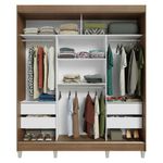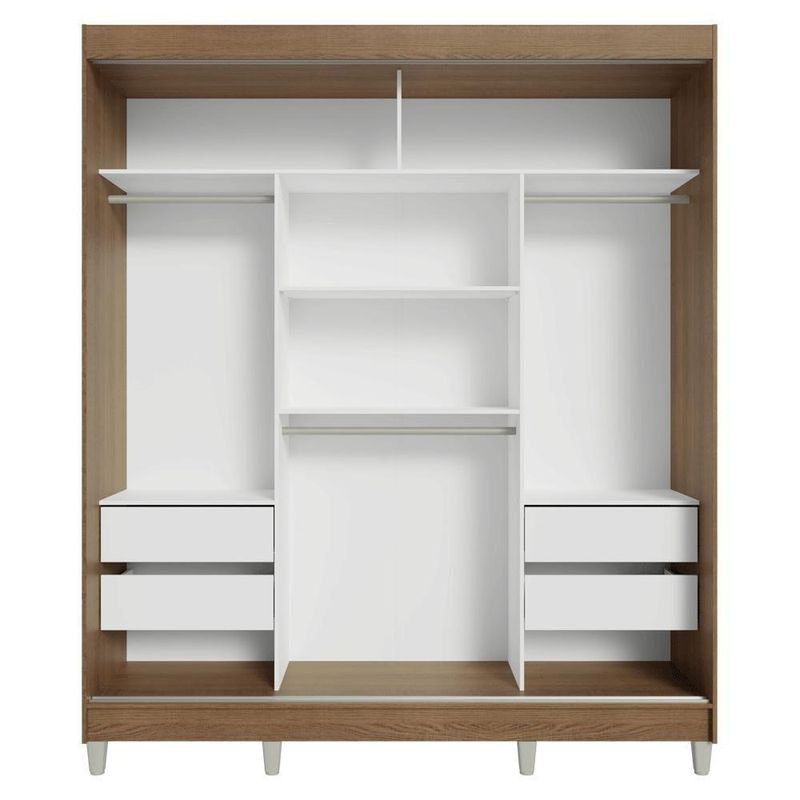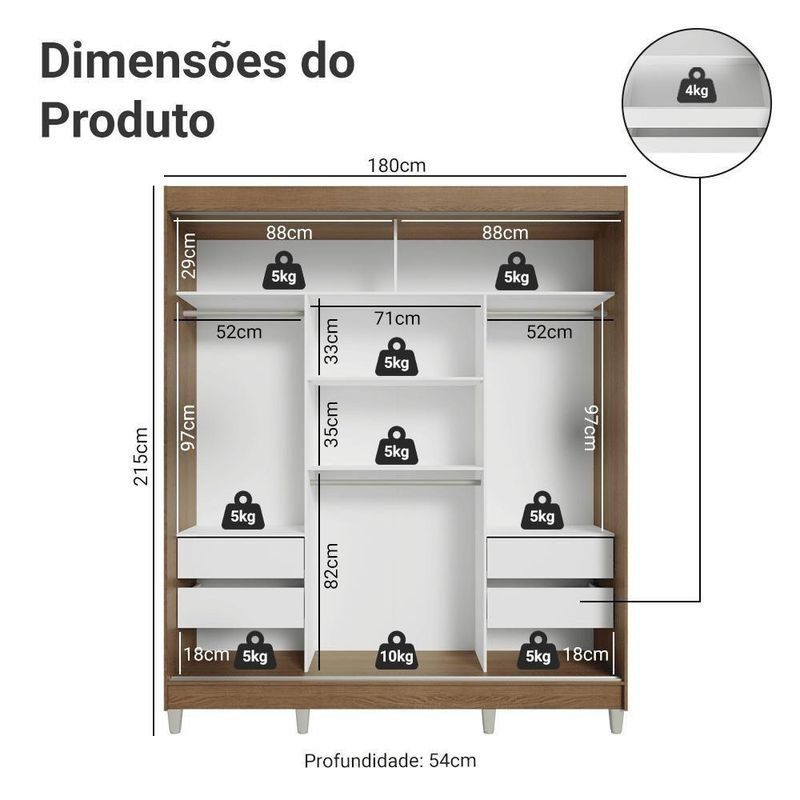 Guarda-roupa Casal Com Pés 3 Portas De Correr Rustic/preto Reno MadesaO Guarda-Roupa Casal Reno da Madesa é a solução perfeita para quem deseja otimizar o espaço do quarto sem abrir mão do design moderno e da funcionalidade. Com três portas de correr que garantem deslizamento suave e silencioso, o guarda-roupa oferece mais praticidade para o dia a dia.Conta com quatro gavetas espaçosas, equipadas com corrediças metálicas, para garantir maior durabilidade e facilidade de uso. São três cabideiros, proporcionando espaço adequado para roupas e muito mais. A organização do seu quarto ficará muito mais simples e eficiente.Essa versão do Reno vem com pés, o que facilita a limpeza embaixo do móvel e dá um toque moderno ao design. Com acabamento em amadeirado Rustic para a estrutura e preto para as portas, o móvel é resistente e elegante, sendo perfeito para qualquer estilo de decoração.Medidas:- 180 cm de largura- 54 cm de profundidade- 215 cm de alturaO que você recebe:- Um Guarda-Roupa com três portas de correrCódigo do produto: 10957KCPÉ importante saber:- Material: MDP- Imagens meramente ilustrativas.- A Madesa não disponibiliza de montagem.- Por , é obrigatório fixar o móvel na parede.- O produto segue com manual de instalação e todas as ferragens necessárias para sua montagem.A Madesa se dedica à sustentabilidade com várias iniciativas: temos uma usina própria que gera energia para uma das fábricas. Priorizamos fornecedores responsáveis com o meio ambiente. Todo o plástico utilizado na produção é reciclado, e as sobras também são reaproveitadas. Investimos no desenvolvimento de nossos colaboradores e em ações que beneficiem a comunidade.