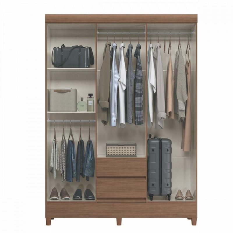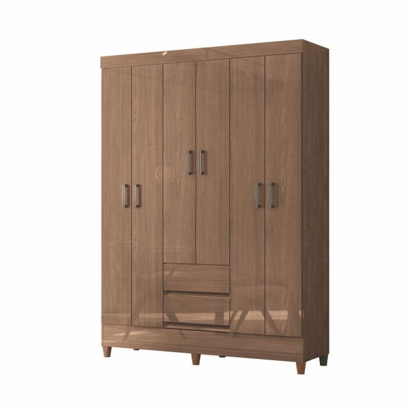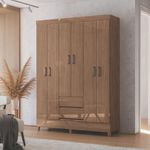Guarda Roupa Casal Com Pés 6 Portas 2 Gavetas Jequitiba New JequitibaUm dormitorio completo pede um bom guarda-roupa, nao e? E, alem de ser muito util para manter as suas roupas organizadas, e importante tambem que ele de um toque especial no ambiente. Este modelo oferece diversos beneficios para isso, nao perca tempo!Dimensoes:Altura (com pes): 191 cm | Largura: 137 cm | Profundidade: 42 cmCaracteristicas:- Estrutura em MDP de 12 mm- Pes em PVC na cor atacama com 7 cm- Cabideiros/calceiros em aluminio- Puxadores em PVC na cor champanhe- Corredicas metalicas- Acabamento/Pintura: Brilhante- Suporte de peso das gavetas: 3 kg- Suporte de peso dos cabideiro: 5 kg- Suporte de peso das prateleiras: 8 kg- Garantia de 3 meses** Imagens ilustrativas. Objetos nao acompanham o produto.** O produto e enviado desmontado.AVISO: Esclarecemos que a Opcao Moveis se responsabilizara pela dos produtos adquiridos ate a porta de entrada ou portaria do endereco indicado, ou seja: e de total responsabilidade do cliente a montagem, desmontagem e instalacao do produto adquirido. Para evitar futuros desagrados ou imprevistos com a , tambem e necessario que o cliente confira as dimensoes do produto escolhido, antes de finalizar a compra, devendo certificar-se de que a mercadoria passara normalmente por elevador, porta, escada e corredor.