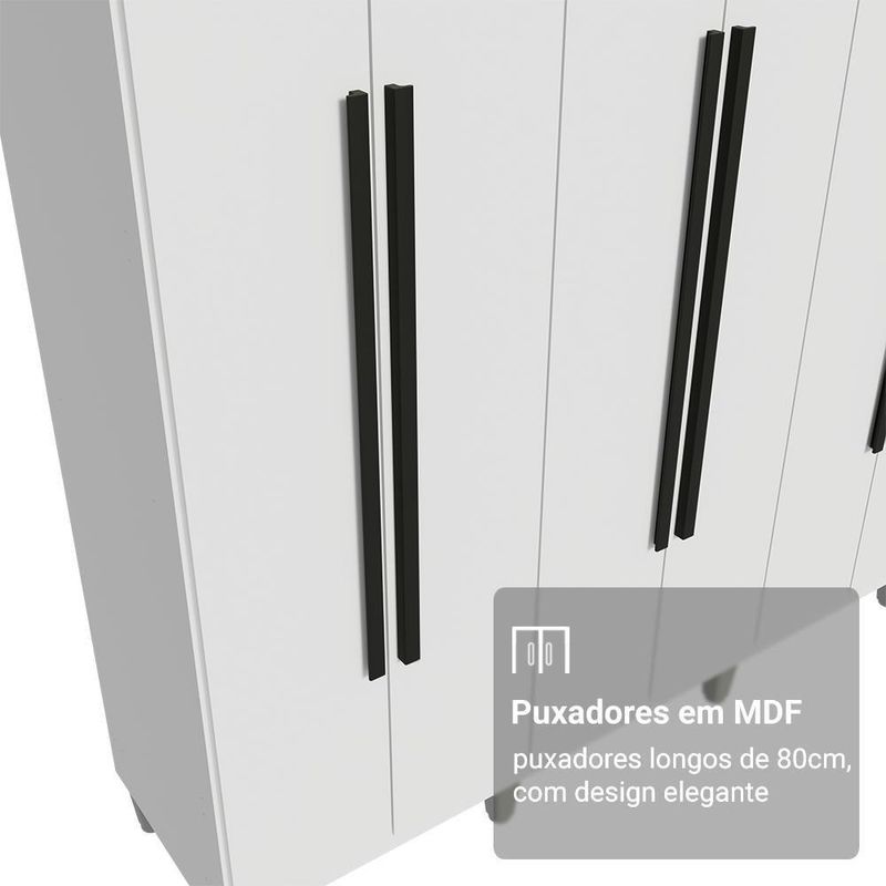 Guarda-roupa Casal Com Pés 8 Portas Batentes Branco/branco/preto Netuno Madesa Branco/branco/pretoDesign moderno, acabamento resistente e amplo espaço: tudo em um só móvel, o Guarda-Roupa 8 Portas Netuno.As portas contam com dobradiças com amortecimento, garantindo fechamento suave, enquanto as gavetas possuem corrediças que permitem abertura total. O maleiro espaçoso é ideal para itens maiores, e as gavetas e prateleiras ajustáveis permitem personalizar o interior conforme suas necessidades.A estrutura e as portas são Brancas e os puxadores em Preto, realçando o design do móvel. Os puxadores de 80 cm em MDF destacam o design alongado do guarda-roupa, enquanto os pés elevam o móvel, facilitando a limpeza e valorizando o ambiente.O Guarda-Roupa Netuno é a escolha perfeita para quem busca um móvel funcional, espaçoso e cheio de detalhes que fazem toda a diferença no quarto.Medidas:- 216 cm de largura- 47 cm de profundidade- 227 cm de alturaO que você recebe:- Um Guarda-Roupa com oito portas batentesCódigo do produto: 1107K54GL3CPÉ importante saber:- Imagens meramente ilustrativas.- A Madesa não disponibiliza de montagem.- Por , é obrigatório fixar o móvel na parede.- O produto segue com manual de instalação e todas as ferragens necessárias para sua montagem.A Madesa se dedica à sustentabilidade com várias iniciativas: temos uma usina própria que gera energia para uma das fábricas. Priorizamos fornecedores responsáveis com o meio ambiente. Todo o plástico utilizado na produção é reciclado, e as sobras também são reaproveitadas. Investimos no desenvolvimento de nossos colaboradores e em ações que beneficiem a comunidade. Cor: Branco | Garantia: 3 meses contra de fabricação | Dimensões - Altura: 227 cm | Dimensões - Largura: 216 cm | Dimensões - Profundidade: 47 cm | Produto: Guarda-Roupa | Marca: Madesa | Peso aproximado: 144 kg | Material: MDP | Estado de Origem: RS | Conteúdo da embalagem: Um Guarda-Roupa | Material para Filtro: MDP | Instruções/Cuidados: Utilize um pano limpo, levemente umedecido e seque em seguida a superfície. Não usar produtos químicos ou abrasivos para a limpeza. Recomendamos polir seu móvel com lustra-móveis duas a três vezes por ano. | Produto precisa de Montagem?: Sim | Peso Produto Com Embalagem (Kg): 144,43 | Altura do Produto com Embalagem (cm): 49,40 | Largura Produto Com Embalagem (cm): 46,50 | Comprimento Produto Com Embalagem (cm): 233,00 | Descrição do Tamanho: 227 cm x 216 cm x 47 cm | Nome do Simples no Fornecedor: Guarda-Roupa Casal com Pés 8 Portas Batentes Branco/Branco/Preto Netuno Madesa | Fabricante: Madesa | RBN: Casa/Móveis/Móveis para Escritório em Casa | Quantidade de Gavetas: 4 | Quantidade de portas: 8 | Materiais do corpo: MDP | Quantidade de caixas de embalagem: 6 | Bullet Point 0: Dimensões: 227 cm altura x 216 cm largura x 47 cm profundidade | Bullet Point 1: O grande diferencial desta versão está nos pés, que elevam o móvel e facilitam a limpeza do quarto. | Bullet Point 2: Gavetas com corrediças telescópicas para deslize suave e dobradiças com amortecimento para fechamento silencioso | Bullet Point 3: Puxadores longos de MDF de 80 cm, com design elegante | É Frágil: Não | Quantidade de Itens: 1 | Certificação de teste externa: Sim | model_number: 1107K54GL3CP | Componentes incluídos: Portas | Precisa de baterias ou pilhas: Não | da peça: 1107K54GL3CP | Peso do item (item_weight): ;unit=kilograms | Dimensões do artigo (item_dimensions): depth#value=47;depth#unit=centimeters;height#value=227;height#unit=centimeters;width#value=216;width#unit=centimeters | Requer montagem (REQUIRES_ASSEMBLY): Sim | Inclui manual de montagem (INCLUDES_ASSEMBLY_MANUAL): Sim | number_of_boxes: 6 | is_assembly_required: Sim | Com corrediças telescópicas: Sim | Com espelho: Não | Linha: Netuno | Estilo: Moderno | Tipo de Guarda Roupa: Casal | Inclui manual de montagem: Sim | item_depth_width_height: depth#value=47;depth#unit=centimeters;height#value=227;height#unit=centimeters;width#value=216;width#unit=centimeters | Cor: Branco/Branco/Preto