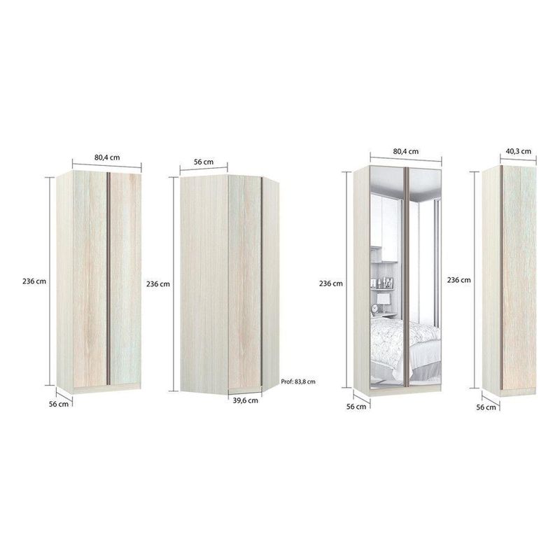 Guarda Roupa Casal De Canto 6 Portas E 3 Gavetas Com Espelho Prime Luciane Móveis Legno CremaA Linha Modulada Prime Plus foi desenvolvida se adequando a vários espaços, de grandes a pequenos. Seus Roupeiros e Módulos com 236 cm de altura oferecem divisórias para atender diversas necessidades. Seus módulos tem profundidade de 56 cm possibilitando acomodar roupas sem amassar. Produzido em MDP de 15mm, dobradiças reforçadas em 35mm e corrediças telescópicas em todas as gavetas que possibilitam abertura total. Características: Matéria Prima: MDP 15mm Corpo/Caixaria: MDP Legno Crema PF. Frontais: Legno Crema BP. Estrutura e prateleira: FF Corrediças: SIM (TELESCÓPICAS) Dobradiças: Sim, metálicas (Curvas Ø35mm) Frontal: Alumínio com Reflecta Puxadores: Perfil Alumínio Montagem com Minifix, Cantoneiras, Parafusos e cavilhas Ambiente Composto por: 1-Guarda-Roupa 1 Porta 40cm Prime Plus Luciane 1-Guarda Roupa Modulado Canto Obliquo 1 Porta 1 Cabideiro 6 Prateleiras Prime Luciane Móveis 1-Guarda Roupa 2 Portas 3 Gavetas 80cm Prime Plus Luciane 1-Guarda-Roupa 2 Portas com Espelho 80cm Prime Plus Luciane Guarda Roupa 2 Portas 3 Gavetas 80cm Prime Plus Luciane Dimensões: Altura: 236 cm Largura: 80.4 cm Profundidade: 56 cm Peso: 84,8 kg Guarda Roupa Modulado Canto Obliquo 1 Porta 1 Cabideiro 6 Prateleiras Prime Luciane Móveis Dimensões: Altura: 236 cm Largura: 83,8 cm Profundidade: 83,8 cm Peso: 83,3 Kg Guarda-Roupa 2 Portas com Espelho 80cm Prime Plus Luciane Dimensões: Altura: 236 cm Largura: 80.4 cm Profundidade: 56 cm Peso: 64.2 kg Guarda-Roupa 1 Porta 40cm Prime Plus Luciane Dimensões: Altura: 236 cm Largura: 40.3 cm Profundidade: 56 cm Peso: 52 kg Garantia do fornecedor de 03 meses Informações complementares: Fique de olho: siga sempre as orientações do fabricante e utilize seu produto de acordo com o manual. A empresa não se responsabiliza pelo mau uso do produto, o que pode causar perda da garantia.#8239; Certifique se que seus dados estejam atualizados, como endereço e um telefone válido. A entrega será realizada no térreo, sendo assim em prédios o deslocamento da mercadoria, subir escadas, elevadores ou transporte por guincho para apartamentos fica sob responsabilidade do comprador. Todas as nossas entregas são realizadas em horário comercial, não sendo possível fazer agendamento, sugerimos acompanhar o rastreio do pedido e ter alguém para receber no endereço indicado. Não nos encarregamos por montagens, desmontagens e outras instalações, serão de responsabilidade do comprador.