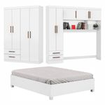 Guarda Roupa Casal Modulado 5 Portas com Cama Hercules 4 Portas e 4 Gavetas BrancoO Guarda Roupa Casal Modulado 5 Portas Hercules 4 Portas e ideal para otimizar o espaco do ambiente e deixar tudo organizado. Possui Maleiros, 2 nichos externos, 3 prateleiras, 9 portas, 4 gavetas com corredicas metalicas. Possui pintura UV, que oferece ao produto resistencia e durabilidade. A Cama Casal com 1,93 de comprimento e 1,44m de largura e a melhor opcao para trazer conforto e elegancia ao seu quarto. Produzida em MDP, com estrado de madeira reflorestada e pes de PVC garante durabilidade e resistencia ao movel. Acabamento resistente com impressao UV e verniz de alta duracao. Ideal para colchoes de 1380mm. Nao acompanha o colchao.Caracteristicas:Marca: Carioca MoveisModelo: HerculesPossui Maleiros: SimNichos Externos: 2Prateleiras: 3Portas: 9Gavetas: 4Pintura: UVMaterial: MDPAcabamento: Impressao UV e Verniz de alta DuracaoDimensoes:Altura: 200 cmLargura: 322 cmProfundidade: 35 cmPeso: 165,40 KgGarantia do Fabricante: 3 Meses.