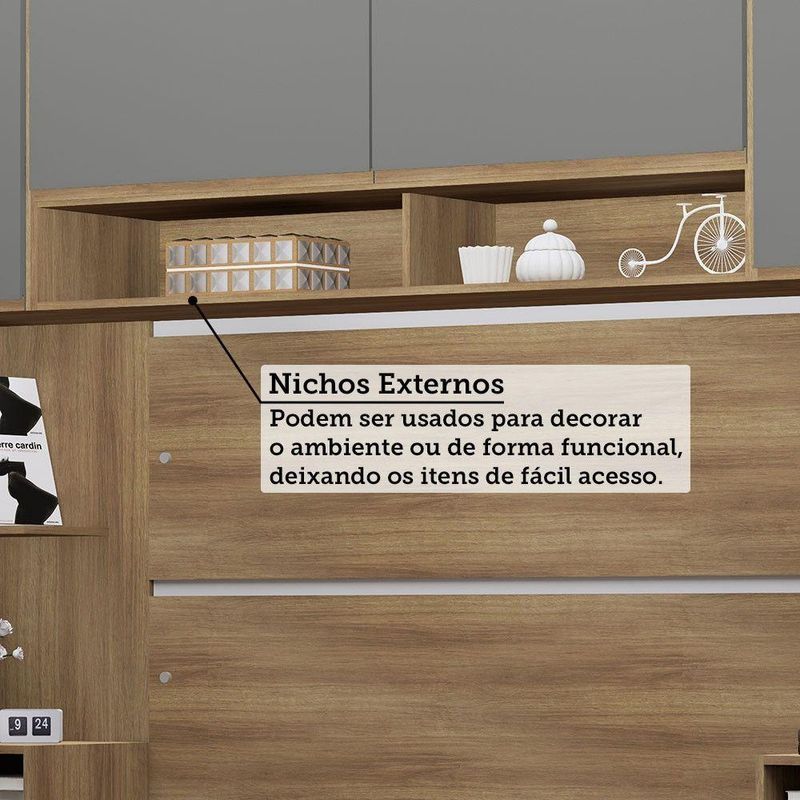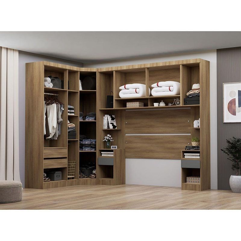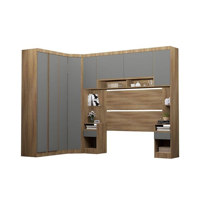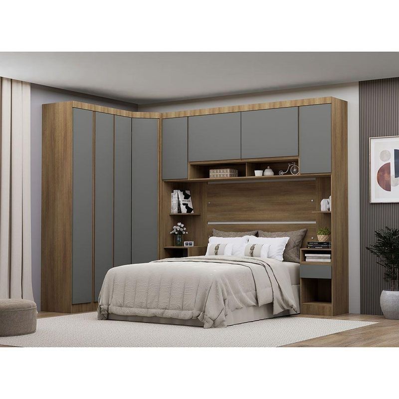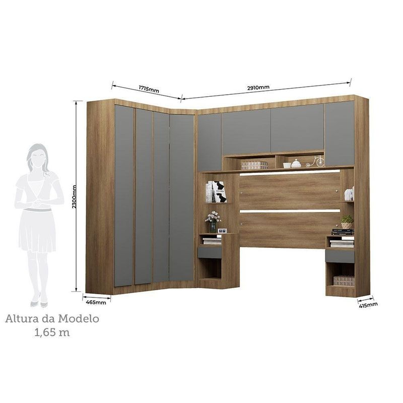 Guarda Roupa Casal Modulado De Canto 8 Portas E 4 Gavetas Avelã Pf/cinza Supremo PfTransforme seu quarto em um espaco completo e sofisticado com o Quarto de Canto de Casal Veneza da Luciane Moveis. Com design funcional, acabamento elegante e excelente aproveitamento de espaco, ele oferece praticidade e estilo no seu dia a dia.Caracteristicas Tecnicas Modelo: Veneza Marca: Luciane Moveis Cor: Avela PF/Cinnamom PF Estrutura: MDP 15mm (corpo e frontal) Acabamento: Pintura PF Quantidade de Portas: 8 Tipo de Dobradicas: Metalicas Ø26mm Quantidade de Gavetas: 4 Tipo de Corredicas: Telescopicas Quantidade de Prateleiras: 10 Tipo de Puxador: Cava em MDP Quantidade e Tipo de Pes: Nao possui Possui Espelho: Nao Sistema de Montagem: Cavilhas e Parafusos Itens Inclusos: 1 conjunto de modulos para quarto, ferragens e manual de montagem Garantia: 3 meses Medidas Gerais do Ambiente Altura: 230 cm Largura: 426,50 cm Profundidade: 46,50 cm Peso Bruto: 256,60 kg Ambiente composto por: - 1 Guarda Roupa Modulado 3 Portas e 2 Gavetas (230 x 101,5 x 46,5) - 1 Guarda Roupa de Canto Diagonal Modulado 1 Porta (230 x 70 x 70) - 2 Mesas de Cabeceira Alta 1 Porta e 1 Gaveta (230 x 38 x 41,5) cada - 1 Armario Aereo Maleiro Modulado 2 Portas (82 x 145 x 41,5) - 1 Painel Cabeceira Casal (90 x 145 x 1,5) Fique de olho: - Siga sempre as orientacoes do fabricante e utilize seu produto de acordo com o manual. - A empresa nao se responsabiliza pelo mau uso do produto, o que pode causar perda da garantia.#8239; - Certifique se que seus dados estejam atualizados, como endereco e um telefone valido. - A entrega sera realizada no terreo, sendo assim, em predios o deslocamento da mercadoria, subir escadas, elevadores ou transporte por guincho para apartamentos fica sob responsabilidade do comprador. - Todas as nossas entregas sao realizadas em horario comercial, nao sendo possivel fazer agendamento, sugerimos acompanhar o rastreio do pedido e ter alguem para receber no endereco indicado. - Nao nos encarregamos por montagens, desmontagens e outras instalacoes. Essas demandas serao de responsabilidade do comprador.