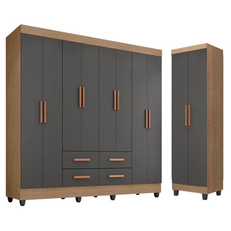 Guarda Roupa Casal Porto 8 Portas E Armário Multiuso Lite Nature Cinza - Móveis LeãoGuarda Roupa Casal Porto 8 Portas e Armário Multiuso Lite Nature Cinza – Móveis LeãoRenove seu quarto com praticidade, espaço e estilo! O Guarda-Roupa Casal Porto, com 8 portas, oferece excelente organização para roupas, calçados e acessórios, garantindo tudo sempre no lugar. Seu design moderno na cor Nature com Cinza combina facilmente com diversos estilos de decoração.Para completar, o Armário Multiuso Lite é perfeito para quem precisa de mais funcionalidade no dia a dia, ideal para organizar objetos, roupas extras, produtos de limpeza ou o que você precisar.Guarda Roupa Casal Porto 8 Portas Nature Cinza – Móveis LeãoCaracterísticas Técnicas: - Desenvolvido em MDP de 12mm - Acabamento em pintura U.V na cor Nature Cinza - Possui 8 Portas - Possui 4 Gavetas suportando até 3kg distribuídos sem impacto - Possui 6 Prateleiras suportando até 2kg distribuídos sem impacto - Puxador em MDF - Cabideiro em alumínio - Corrediças metálicas - Design moderno - Amplo espaço Dimensões: Altura: 181 cm Largura: 200 cm Profundidade: 40 cmArmário Multiuso Lite Nature Cinza – Móveis LeãoCaracterísticas Técnicas:- Desenvolvido em MDP de 12mm- Acabamento em pintura U.V na cor Nature Cinza- Possui 2 portas- Possui 3 prateleiras suportando até 2kg distribuídos sem impacto- Puxador em MDF- Peso suporta até 15kg- Pés em PVC- Design moderno- Amplo espaçoDimensões:Altura: 181 cmLargura: 50 cmProfundidade: 37,5 cmOBS: Não acompanha decorações, utensílios, eletros e acessórios.Informações importantes:- Não acompanha decorações e acessórios- Nossas cargas possuem seguro, portanto, no ato da entrega, confira a quantidade de volumes recebida, e também o estado da embalagem. Se houver qualquer inconsistência, não assine o comprovante de entrega;- O armazenamento do produto no endereço de entrega é de responsabilidade do comprador. Evite apoiar o produto na vertical, bem como evite áreas que deixem o produto exposto a chuva ou umidade excessiva;- Pequenas variações de tonalidade são possíveis, em razão da diferença de resolução da tela onde o anúncio está sendo visualizado. Se notar diferença expressiva, comunicar a empresa antes de efetuar a montagem;- O serviço de entrega contratado contempla a entrega até a primeira área coberta ou portaria, não sendo coberto o ato de subir escadas/elevadores ou adentrar nas residências;- Não nos responsabilizamos pela montagem, desmontagem ou instalação do produto.