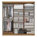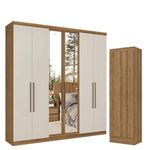 Guarda Roupa Casal Presence Full Glass 6 Portas Almendra Off White Acetinado E Multiuso Space Almendra - ThbGuarda Roupa Casal Presence Full Glass 6 Portas Almendra Off White Acetinado e Multiuso Space Almendra - THBO Guarda Roupa Casal Presence Full Glass 6 Portas Almendra Off White e Multiuso Space Almendra - THB é a combinação perfeita de elegância e praticidade para o quarto do casal. Com design contemporâneo e acabamento sofisticado nas cores Almendra e Off White, ele traz charme e aconchego ao ambiente, eles oferece excelente capacidade interna, permitindo organizar roupas, sapatos, acessórios e enxoval de forma funcional. Seus interior bem planejado conta com nichos, garantindo praticidade no dia a dia e ajudando a manter tudo sempre em ordem. Fabricado com materiais de qualidade e estrutura robusta, o guarda-roupa Presence Full Glass e Multiuso Space Almendra é á escolha perfeita e duradoura que une estilo, organização e modernidade em um único móvel.Guarda Roupa Casal Presence Full Glass 6 Portas Almendra Off White Acetinado - THBCaracterísticas Técnicas:- Desenvolvido em MDP 12 e 15 mm- Pintura com acabamento UV Fosco- Dobradiças metálicas- Corrediças metálicas- 6 Portas- 3 Prateleiras removíveis e 5 tampos fixos- 6 Puxadores com acabamento bronze- Cabideiros- Design modernoDimensões:Altura: 219 cmLargura: 210 cmProfundidade: 47 cmArmário Multiuso 2 Portas Space Almendra Acetinado - THBCaracterísticas Técnicas:- Desenvolvido em MDP 12mm- Pintura com acabamento UV Fosco- Dobradiças metálicas- 2 Portas- 5 Prateleiras- Design minimalistaDimensões:Altura: 182 cmLargura: 55 cmProfundidade: 34 cmInformações importantes:- Não acompanha decorações e acessórios- Nossas cargas possuem seguro, portanto, no ato da entrega, confira a quantidade de volumes recebida, e também o estado da embalagem. Se houver qualquer inconsistência, não assine o comprovante de entrega;- O armazenamento do produto no endereço de entrega é de responsabilidade do comprador. Evite apoiar o produto na vertical, bem como evite áreas que deixem o produto exposto a chuva ou umidade excessiva;- Pequenas variações de tonalidade são possíveis, em razão da diferença de resolução da tela onde o anúncio está sendo visualizado. Se notar diferença expressiva, comunicar a empresa antes de efetuar a montagem;- O serviço de entrega contratado contempla a entrega até a primeira área coberta ou portaria, não sendo coberto o ato de subir escadas/elevadores ou adentrar nas residências;- Não nos responsabilizamos pela montagem, desmontagem ou instalação do produto.