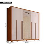 O Roupeiro Quintus Lux é o móvel ideal para seu ambiente de descanso, trazendo mais elegância e funcionalidade, contando com 6 portas e 6 gaveteiros possui amplo espaço interno além de um design único. Feito em MDF e HDF possuem maior resistência e durabilidade ao móvel.Dimensões do produto montado:Altura: 231,3 cm Largura: 265 cmProfundidade: 58,5 cmPeso: 235,8kgRoupeiro Quintus LuxPossui 6 Portas Sendo 2 De EspelhosPossui 6 GavetasPossui 2 Cabideiros Em AlumínioPossui 10 SapatasPossui 16 NichosPossui 20 Repartições InternasPeso SuportadoGaveteiro: 3kgRepartições Superior: 3kgRepartições inferior: 5kgNichos: 3kgPrateleiras: 5kgAcompanha manual de montagemTonalidade do Produto: Freijo/ Off WhiteEstrutura em MDP de 12mm, 15mm e 25mm de espessura. HDF de 2,5mm de espessura.Garantia 90 dias contra defeito de fabricaçãoEste móvel chegará em sua casa separado em 8 volumesDimensões da embalagem:1º VolAltura: 8,9 cmLargura: 232 cmComprimento: 54,9 cm2º VolAltura: 5,9 cmLargura: 265,7 cmComprimento: 54,7 cm3º VolAltura: 8,3 cmLargura: 221,7 cmComprimento: 54,5 cm4º VolAltura: 16,3 cmLargura: 85,1 cmComprimento: 36,7 cm5º,6º VolAltura: 5,5 cmLargura: 152,2 cmComprimento: 45,9 cm7º VolAltura: 4 cmLargura: 223,8 cmComprimento: 46,2 cm8º VolAltura: 5,5 cmLargura: 116 cmComprimento: 43 cmRecomendações de limpeza:Limpar com pano macio, seco ou úmido, sem uso de produtos abrasivos. Pois, podem trazer danos ao produto.Sobre a entrega:As transportadoras contratadas, não realizam entregas em apartamentos. Realizando assim a entrega na portaria do prédio.