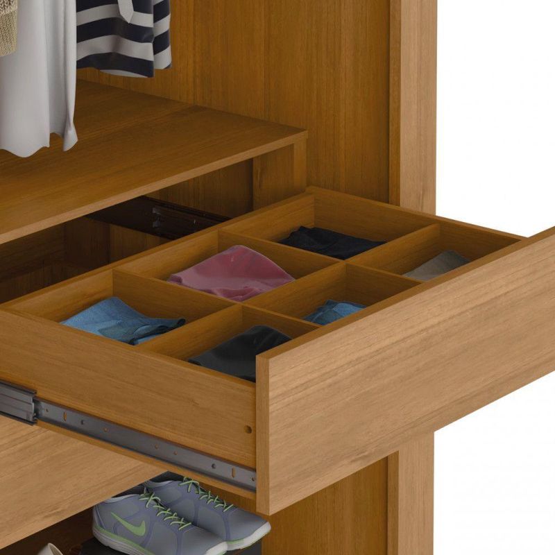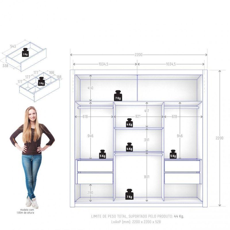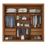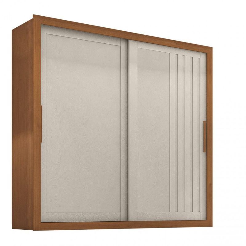 Guarda Roupa De Casal Trianon 2 Portas De Correr Cinamomo/areiaO Guarda-Roupa Trianon de Casal da Zanzini e ideal para quem busca organizacao e estilo. Com 2 portas de correr que otimizam espaco, oferece amplo armazenamento para roupas e acessorios. Seu acabamento moderno combina com qualquer ambiente, garantindo praticidade e beleza ao quarto. Qualidade para durar por muitos anos.Dimensoes: Altura: 220 cm | Largura: 220 cm | Profundidade: 52 cm Caracteristicas: - Estrutura em MDP - Nao acompanha pes - Nao acompanha espelho - 2 Portas elaboradas com batentes em MDP e ripados compostos por MDF - 4 gavetas com corredica telescopica - Cabideiros e calceiros metalicos - Puxadores em MDF - Acabamento texturizado fosco - Profundidade das gavetas: 10 cm - Suporte de peso das gavetas: 3kg - Suporte de peso das prateleiras: 4kg - Suporte de peso do cabideiro: 3kg - Garantia: 3 Meses ** Imagens ilustrativas. Objetos nao acompanham o produto. ** O produto e enviado desmontado. AVISO: Esclarecemos que a Opcao Moveis se responsabilizara pela entrega dos produtos adquiridos ate a porta de entrada (casas) ou portaria (predios ou condominios) do endereco indicado, ou seja: e de total responsabilidade do cliente a montagem, desmontagem e instalacao do produto adquirido. Para evitar futuros desagrados ou imprevistos com a entrega, tambem e necessario que o cliente confira as dimensoes do produto escolhido, antes de finalizar a compra, devendo certificar-se de que a mercadoria passara normalmente por elevador, porta, escada e corredor.